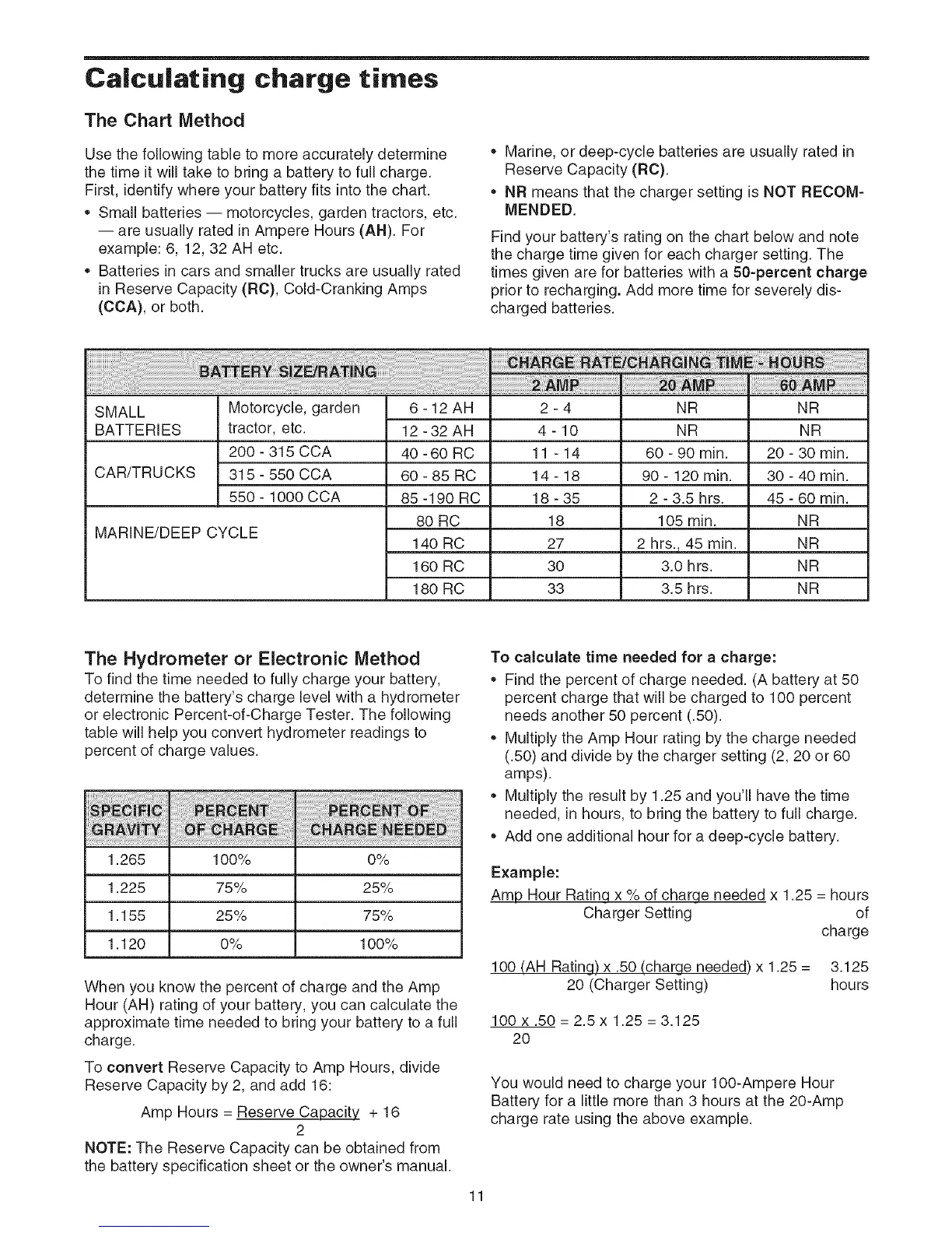 or electronic Percent-of-Charge Tester. The following