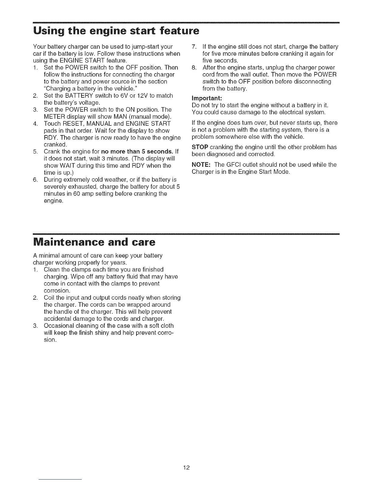 6. During extremely cold weather, or if the battery is
