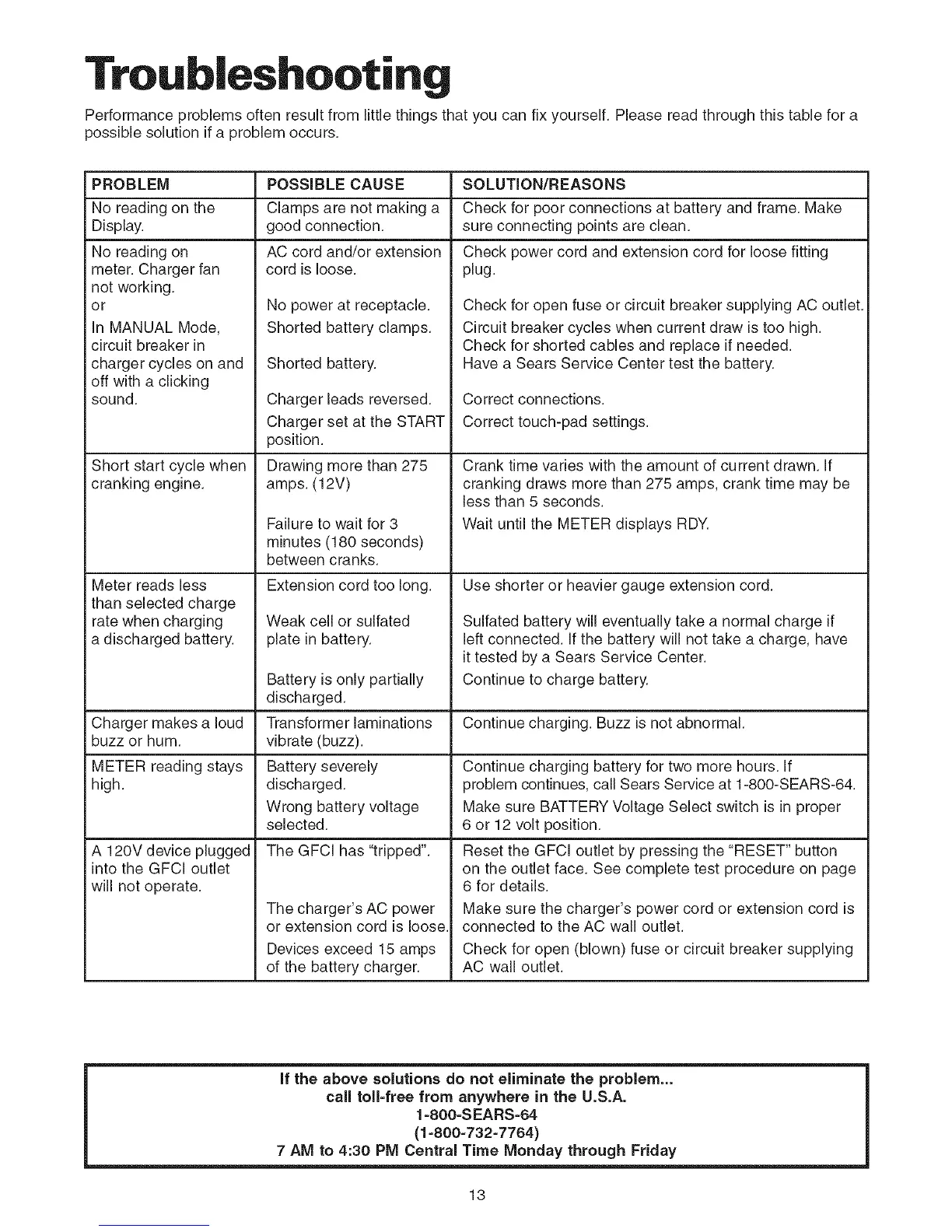 problem continues, call Sears Service at 1-800-SEARS-64.