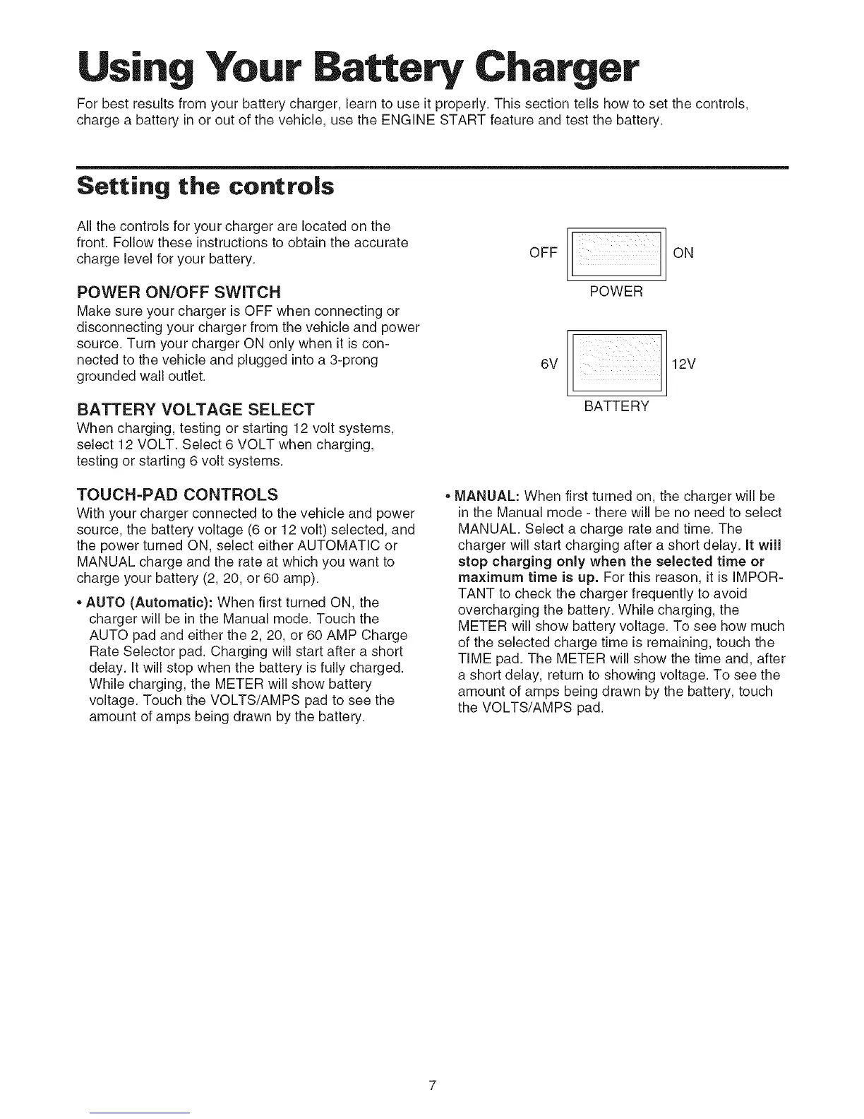 For best results from your battery charger, learn to use it properly. This section tells how to set the controls,