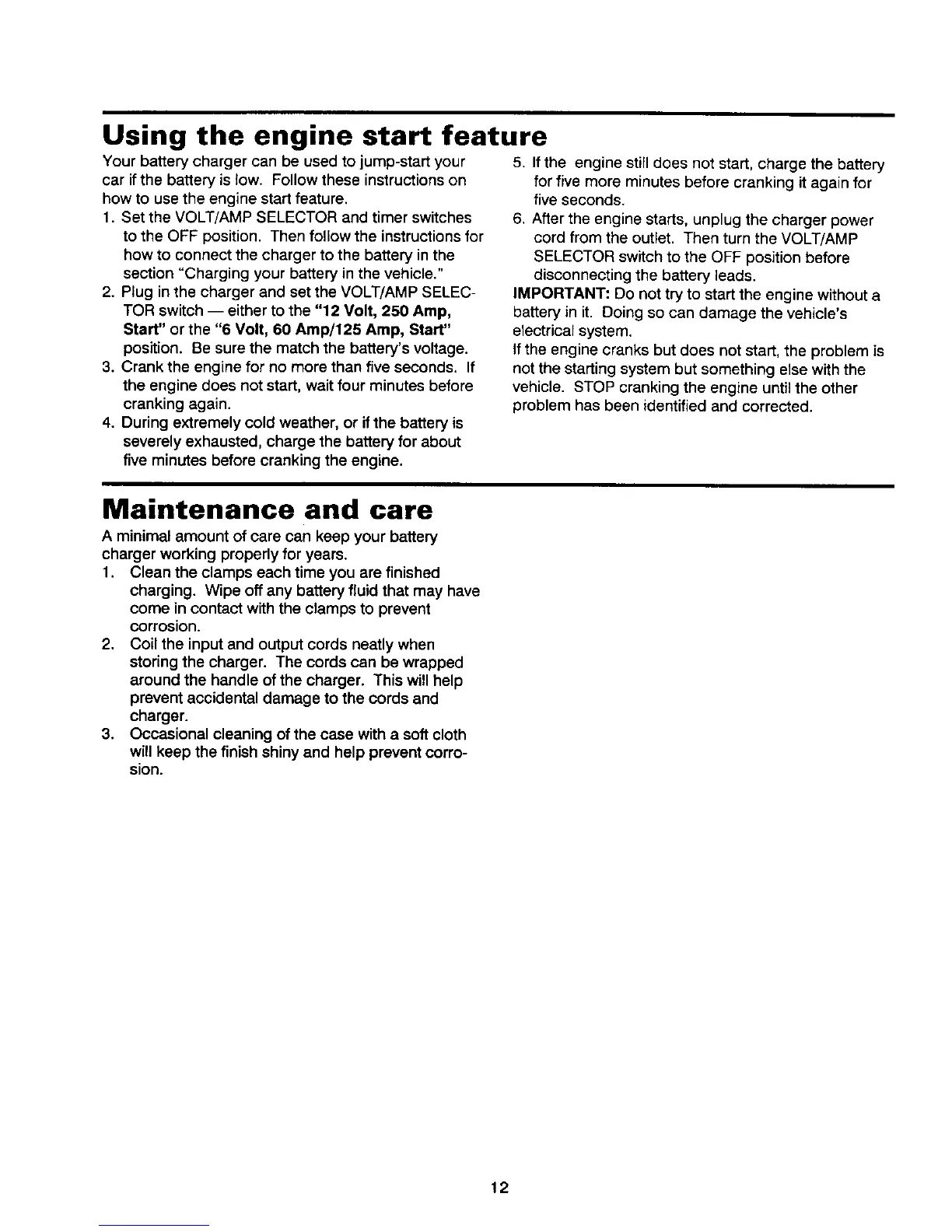 Start" or the "6 Volt, 60 Amp/125 Amp, Start"