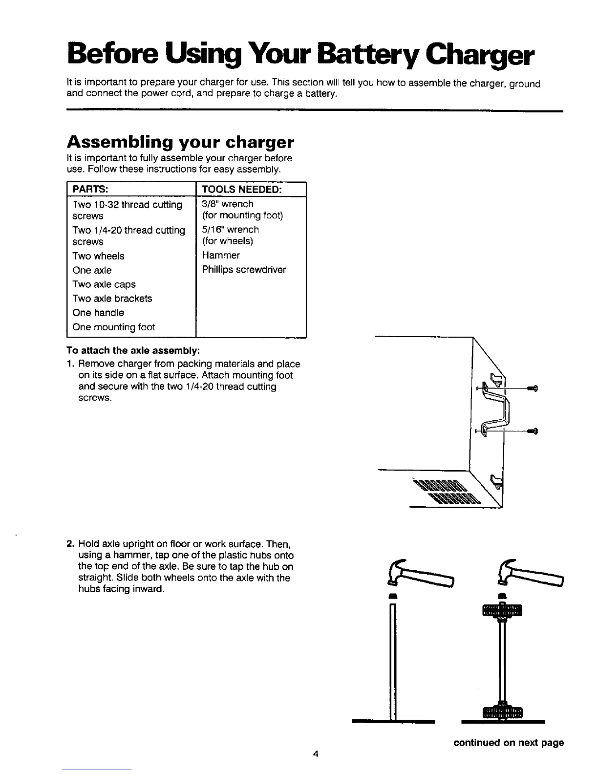 It is important to prepare your charger for use. This section will tell you how to assemble the charger, ground