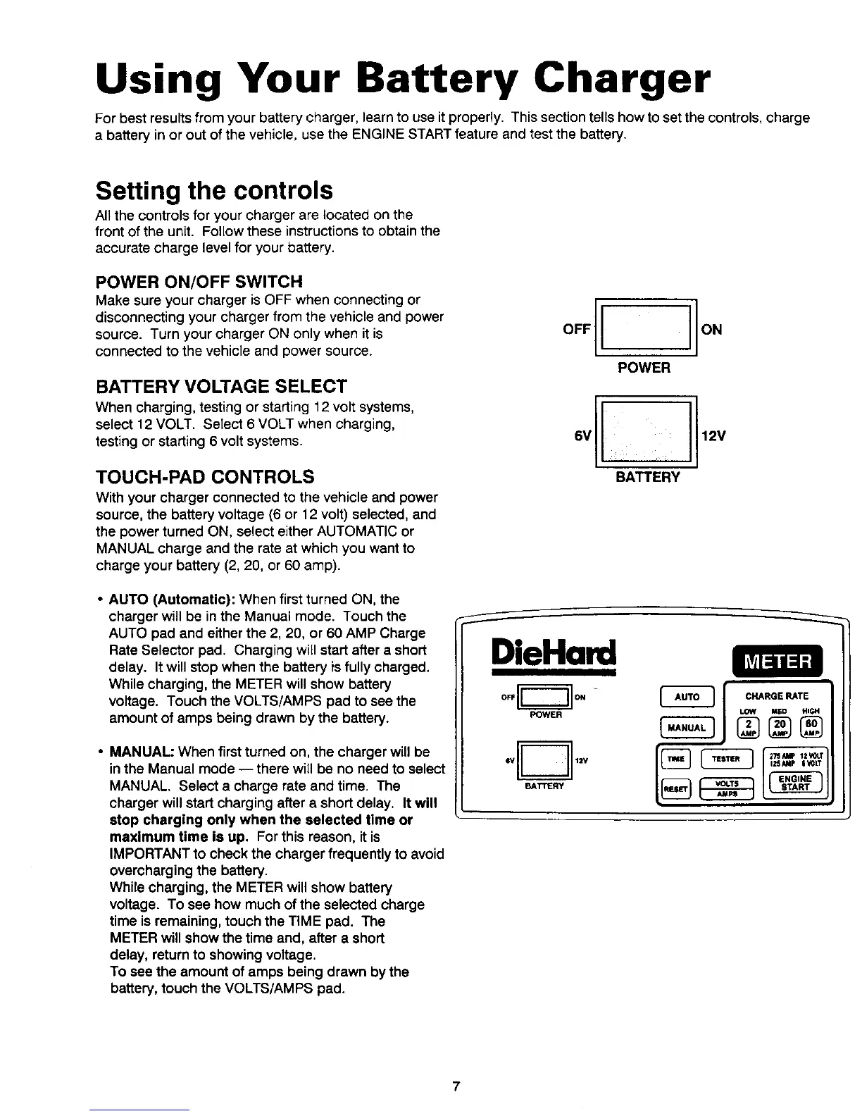 For best results from your battery charger, learn to use it properly. This section tells how to set the controls, charge