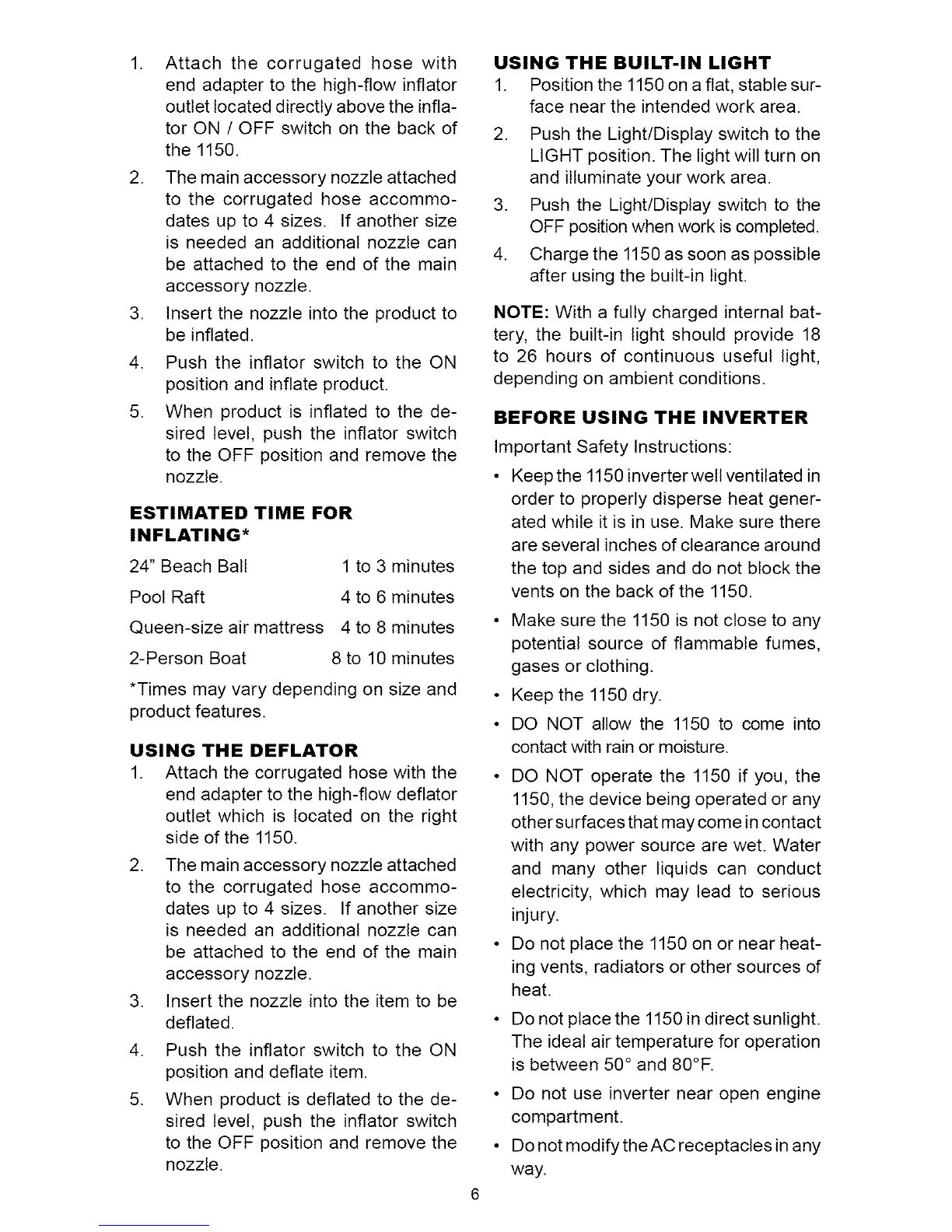 • Keepthe 1150 inverterwell ventilated in