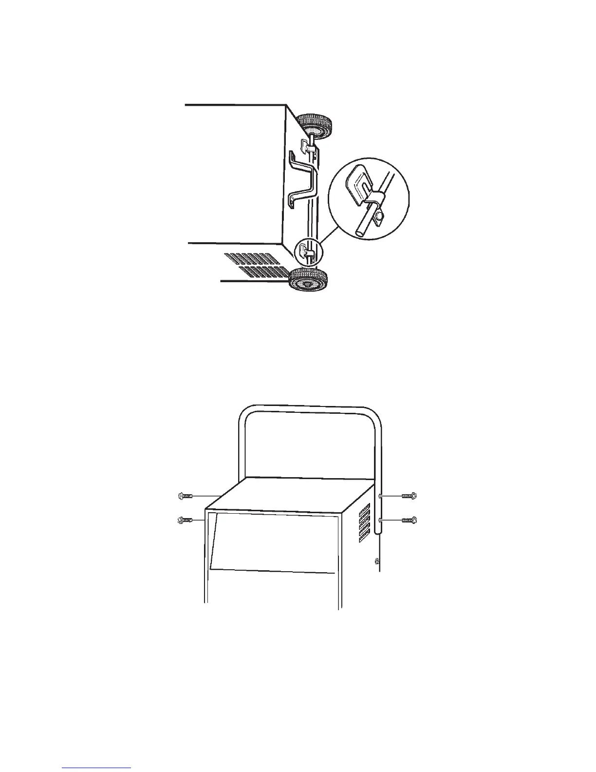 Turn the charger right side up onto its foot and wheels. Remove the two