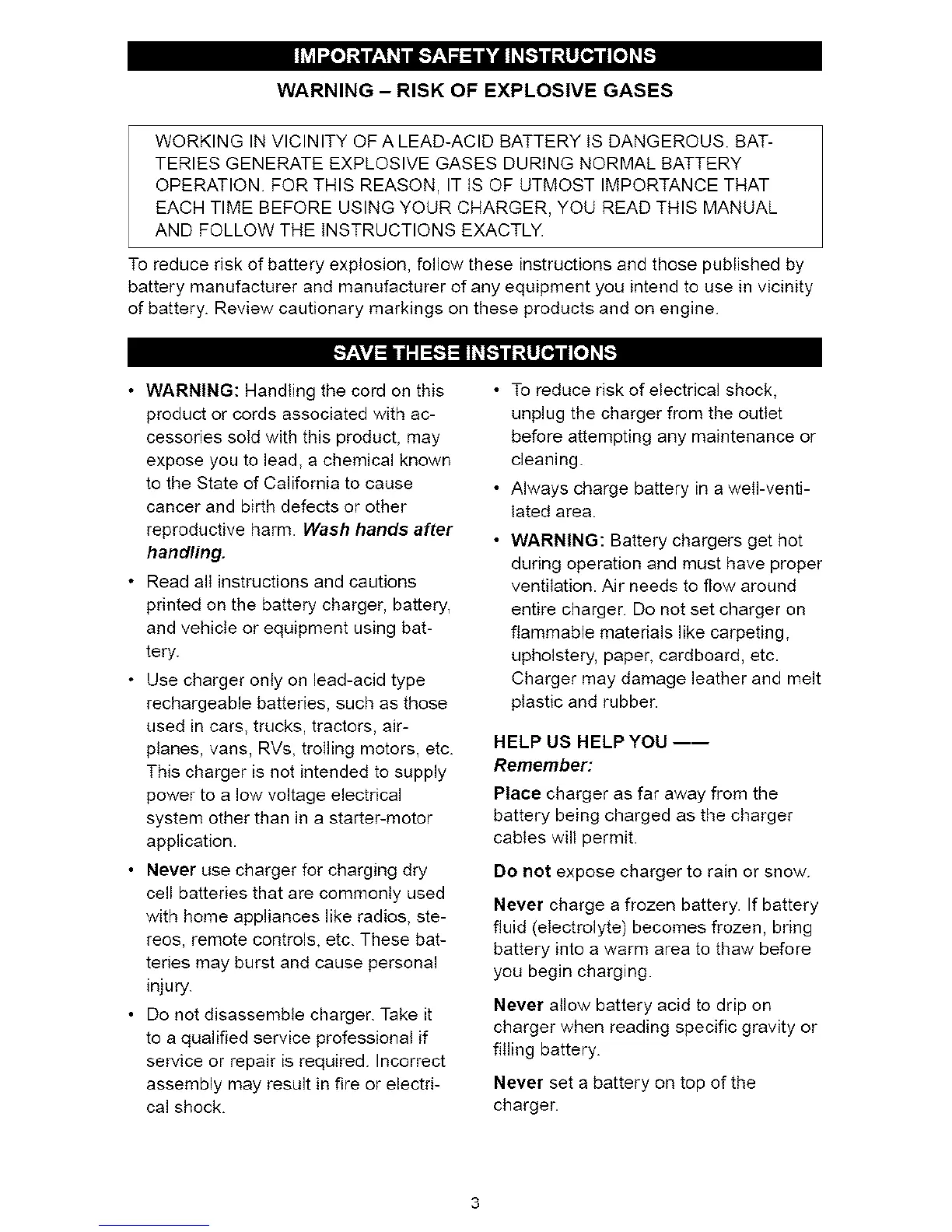 EACH TIME BEFORE USING YOUR CHARGER, YOU READ THIS MANUAL