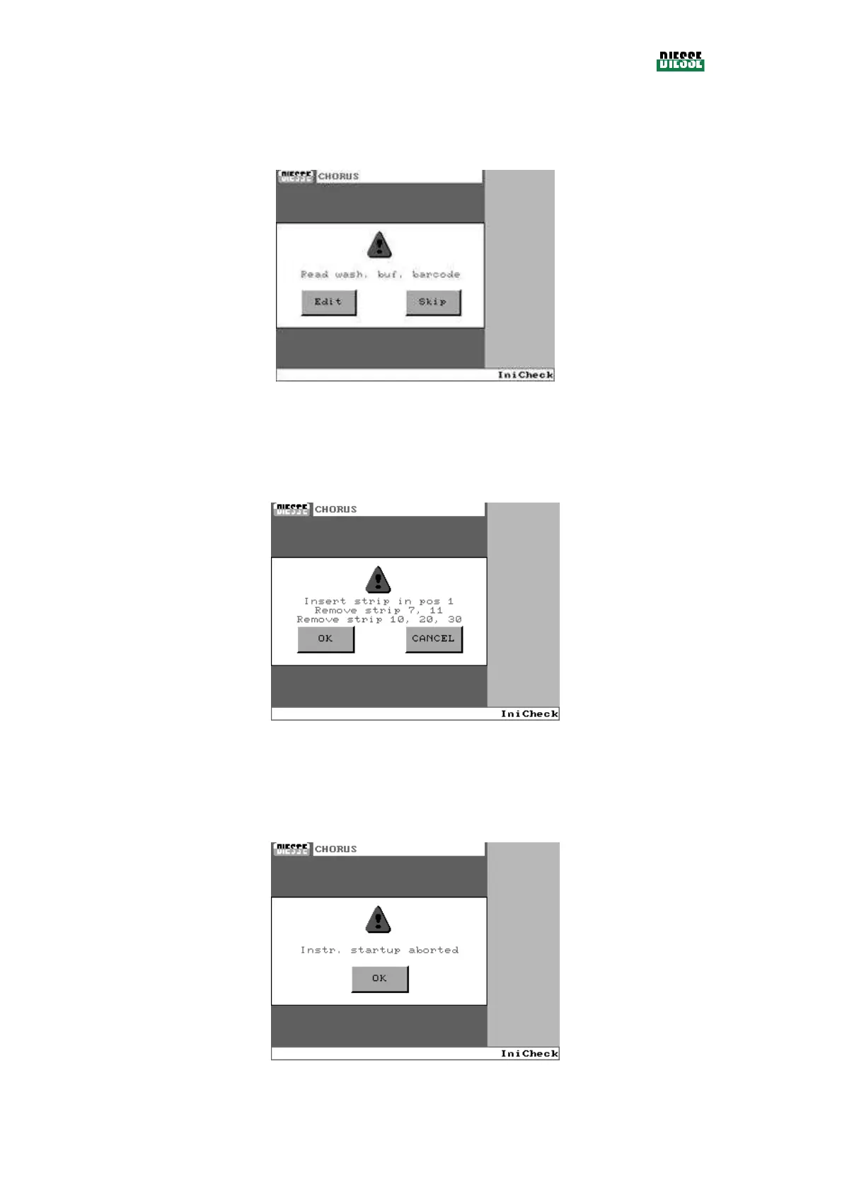 The operator must position and/or remove the strips and press the Ok key.