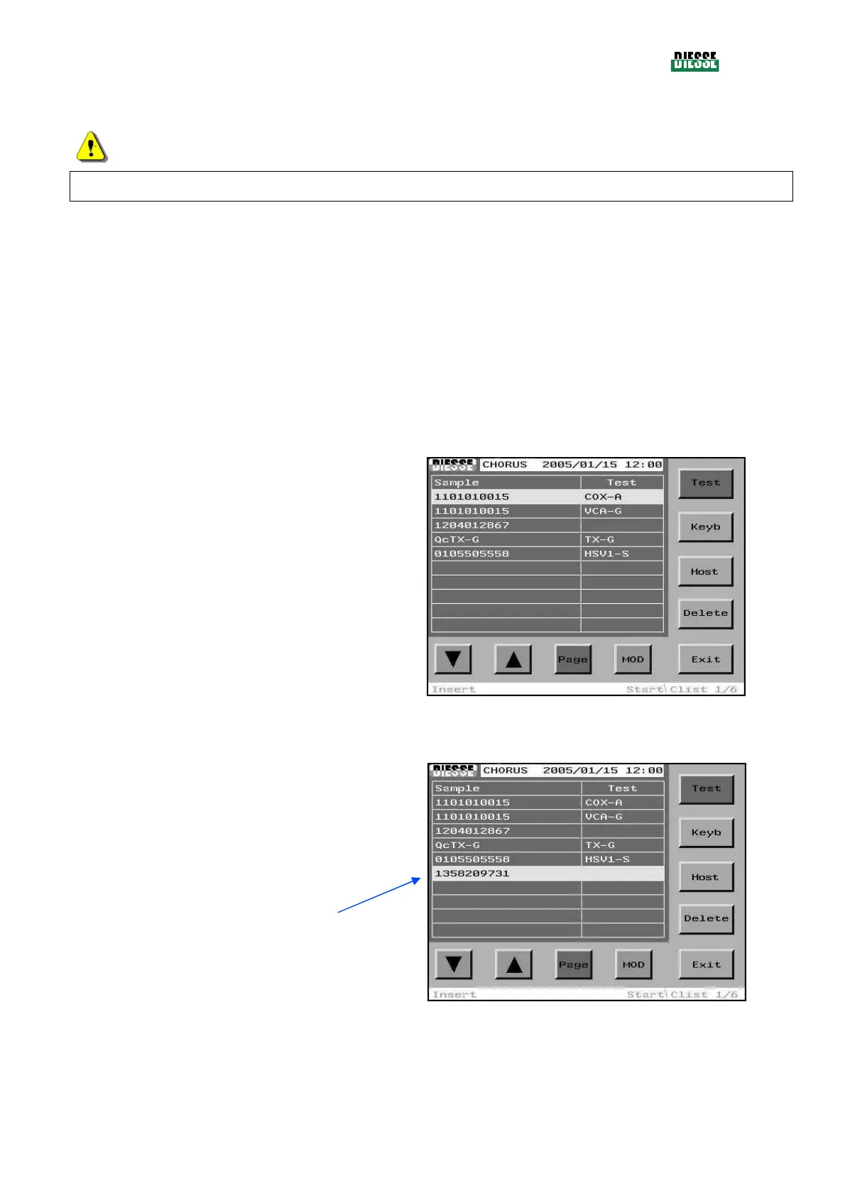 4.5.1.2 Insertion of the following sample codes