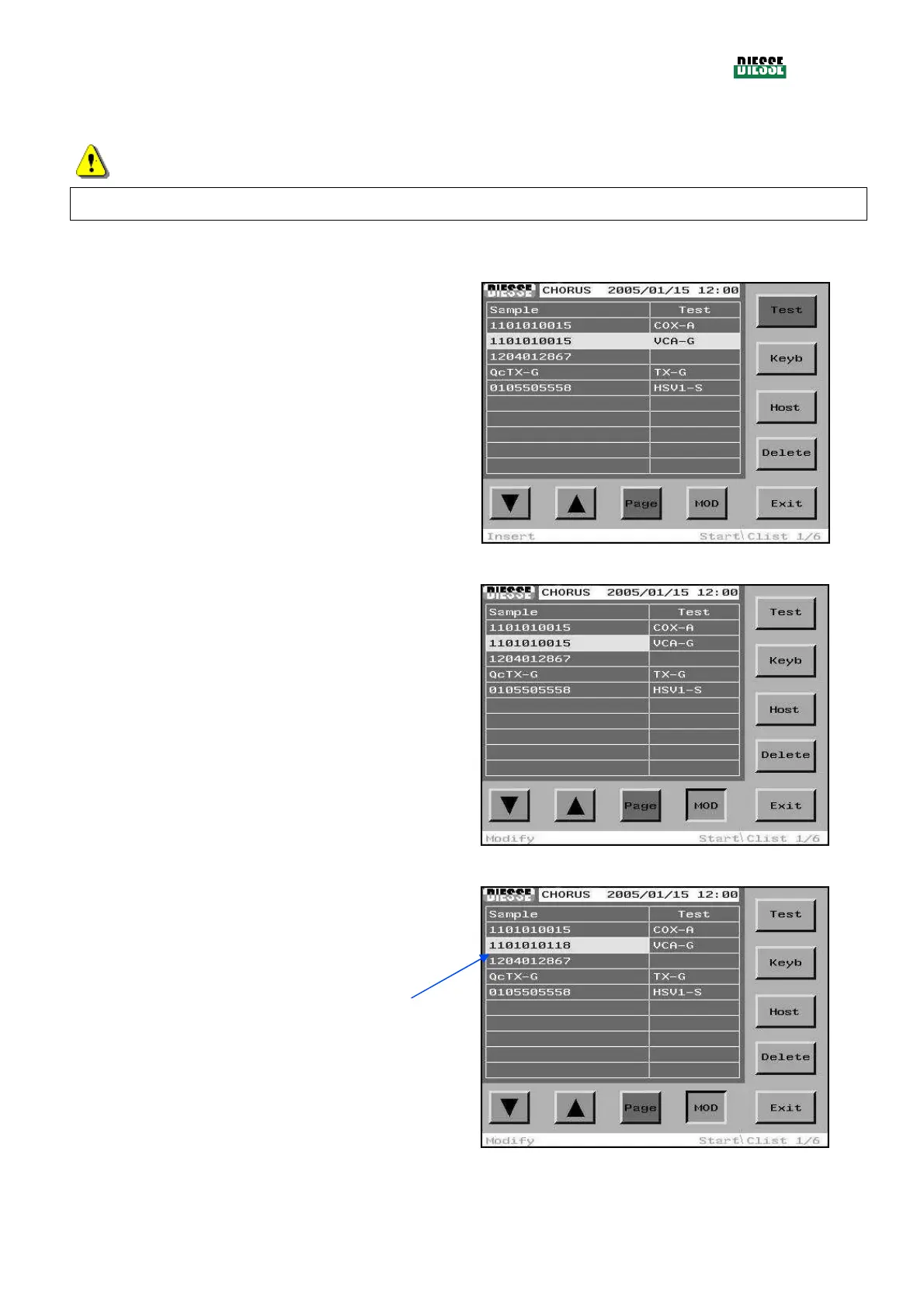 By pressing the MOD key, the Modification mode is