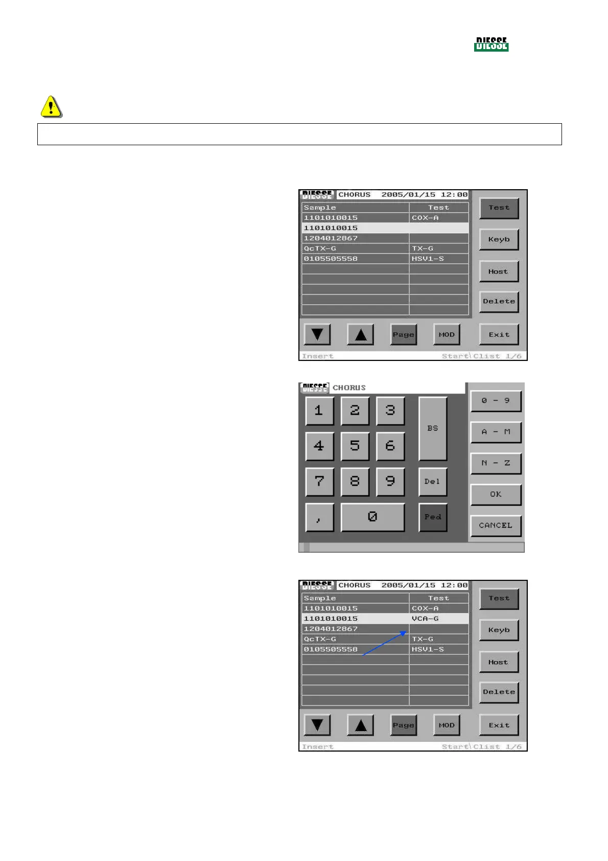 test code, and the operator wants to insert a test