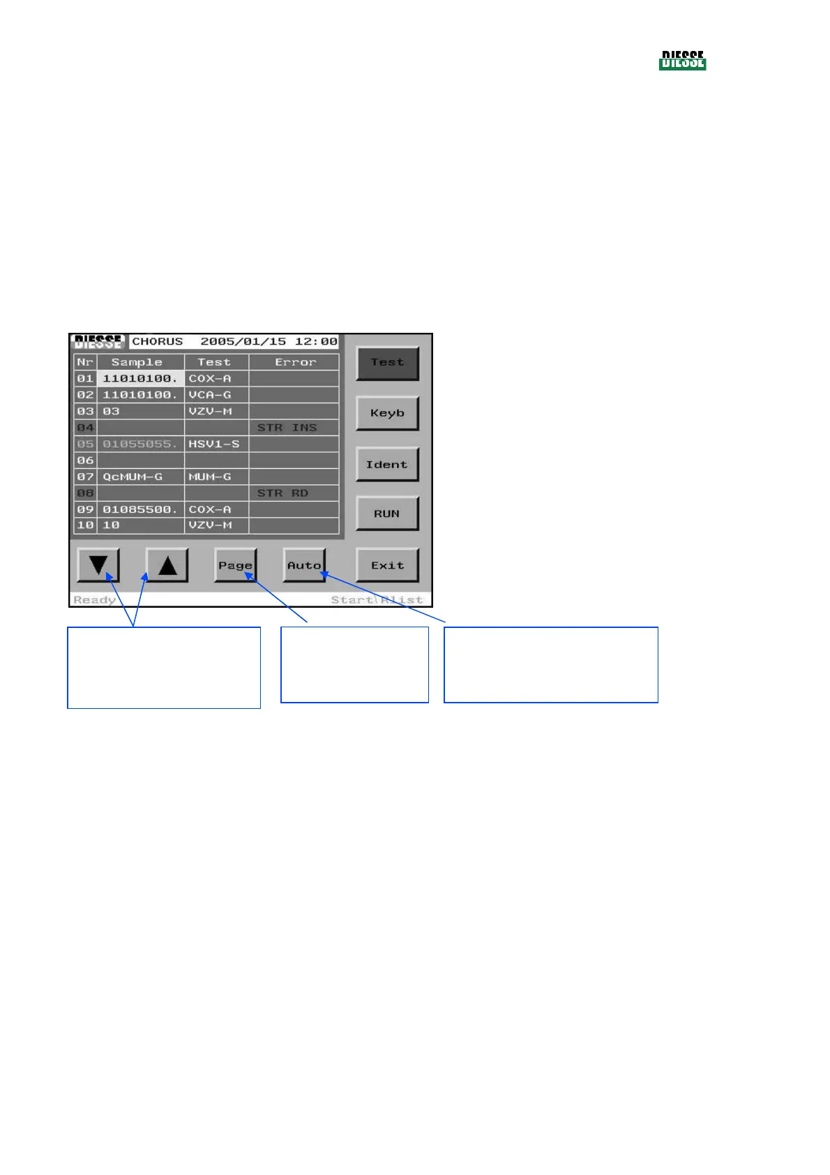 The Err column displays any error strings relative to the strip which has been identified.