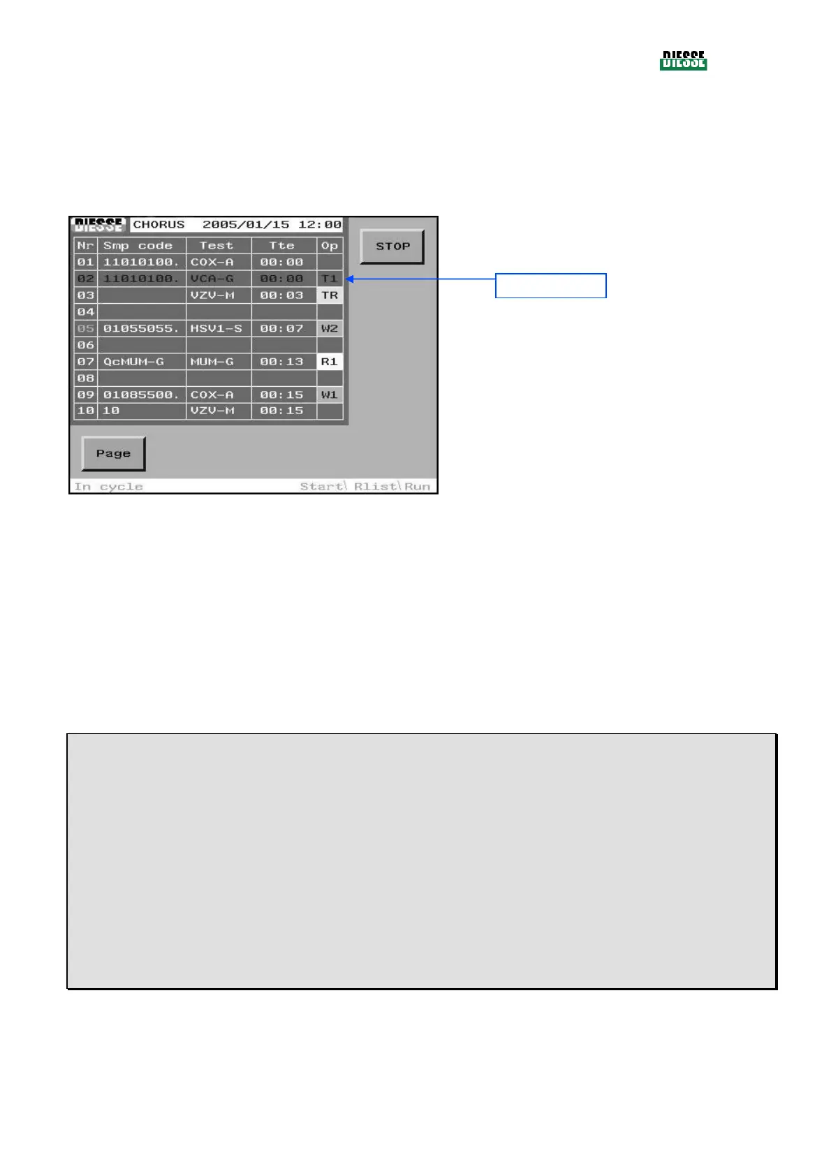 asked to confirm, and the cycle is stopped after confirmation. The results of the samples already tested