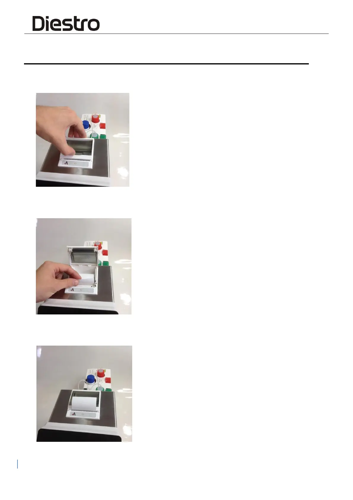 2. Replace the roll and remove the end of the paper as described in the image.
