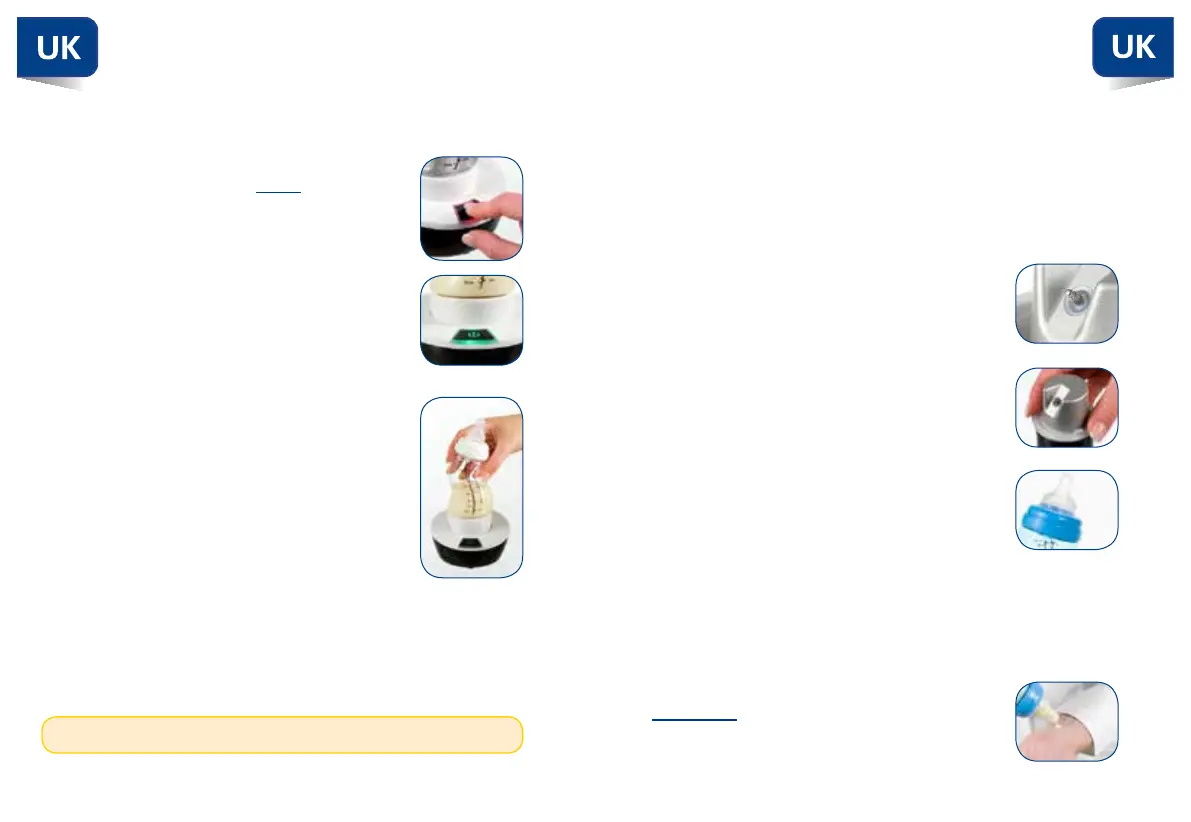 To switch on the S-bottle warmer, press and hold