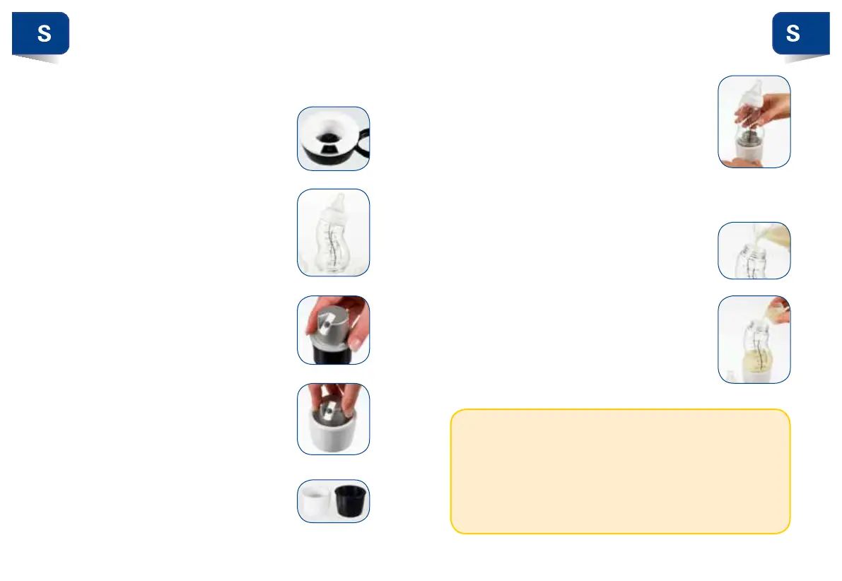 1) Fyll S-flaskan ovanifrån med (bröst)mjölk
