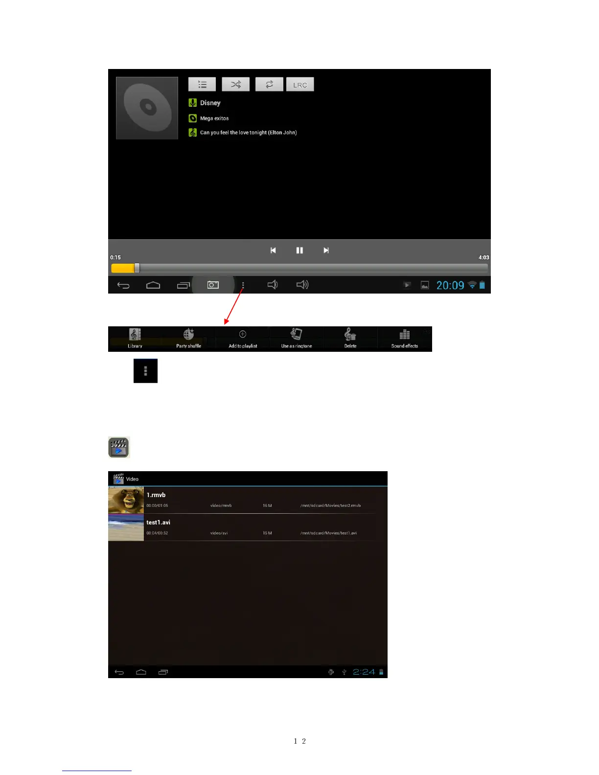 You can play videos saved in your tablet or TF card. To play, tap Video