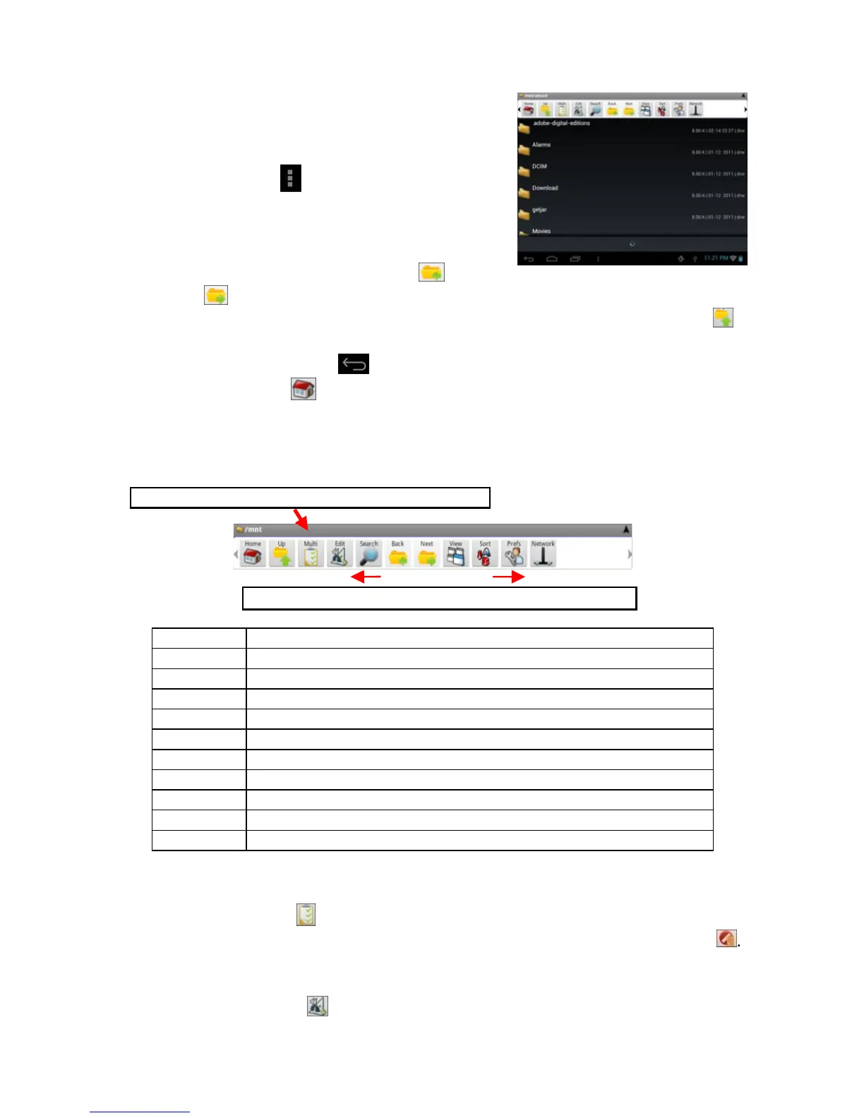You can use the toolbar to navigate through your device’s internal memory/ memory