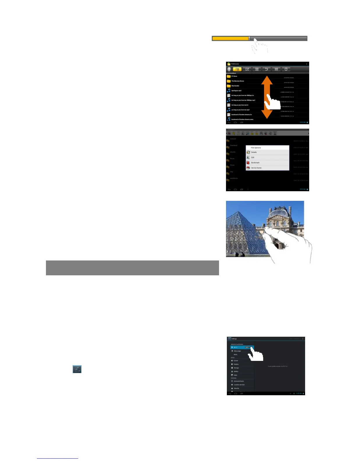 Slide finger: In different browsers (File, Music,