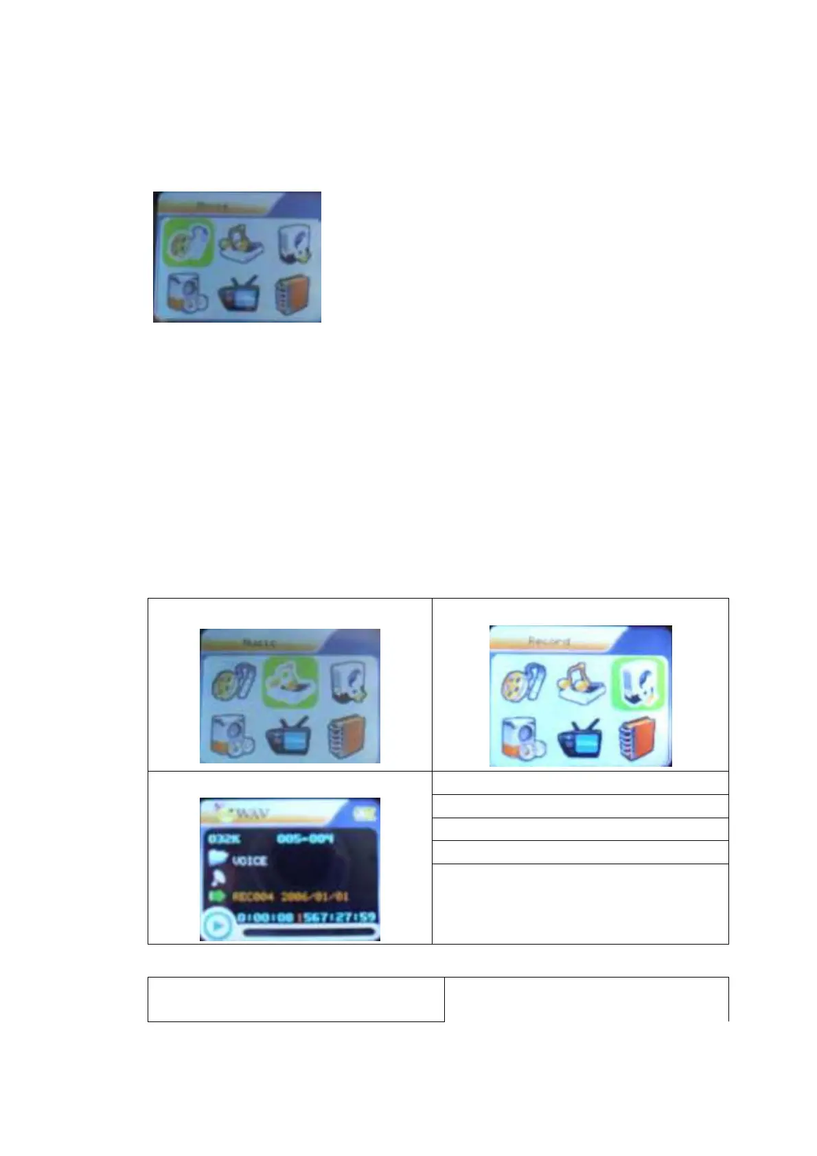 2. Press MENU button to enter record submenu
