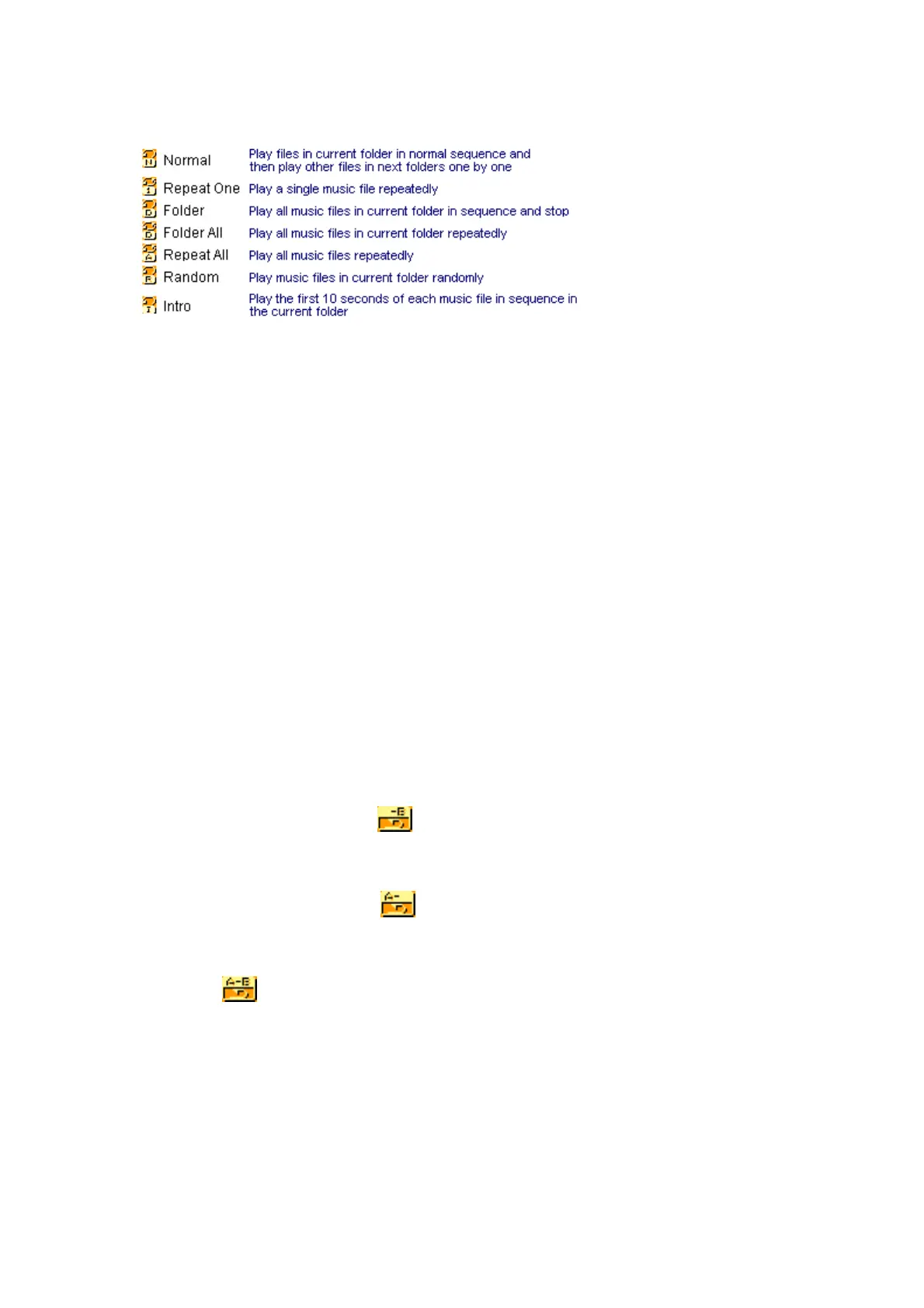 The first option in Play Submenu is Play Mode. The player will play files according to the mode selected.