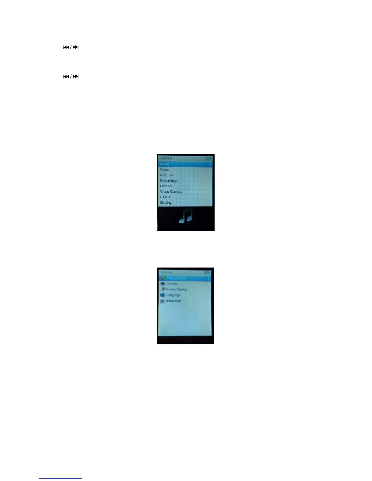 player. To change setting, from main menu, choose Setting, a sub menu appear for chooses.