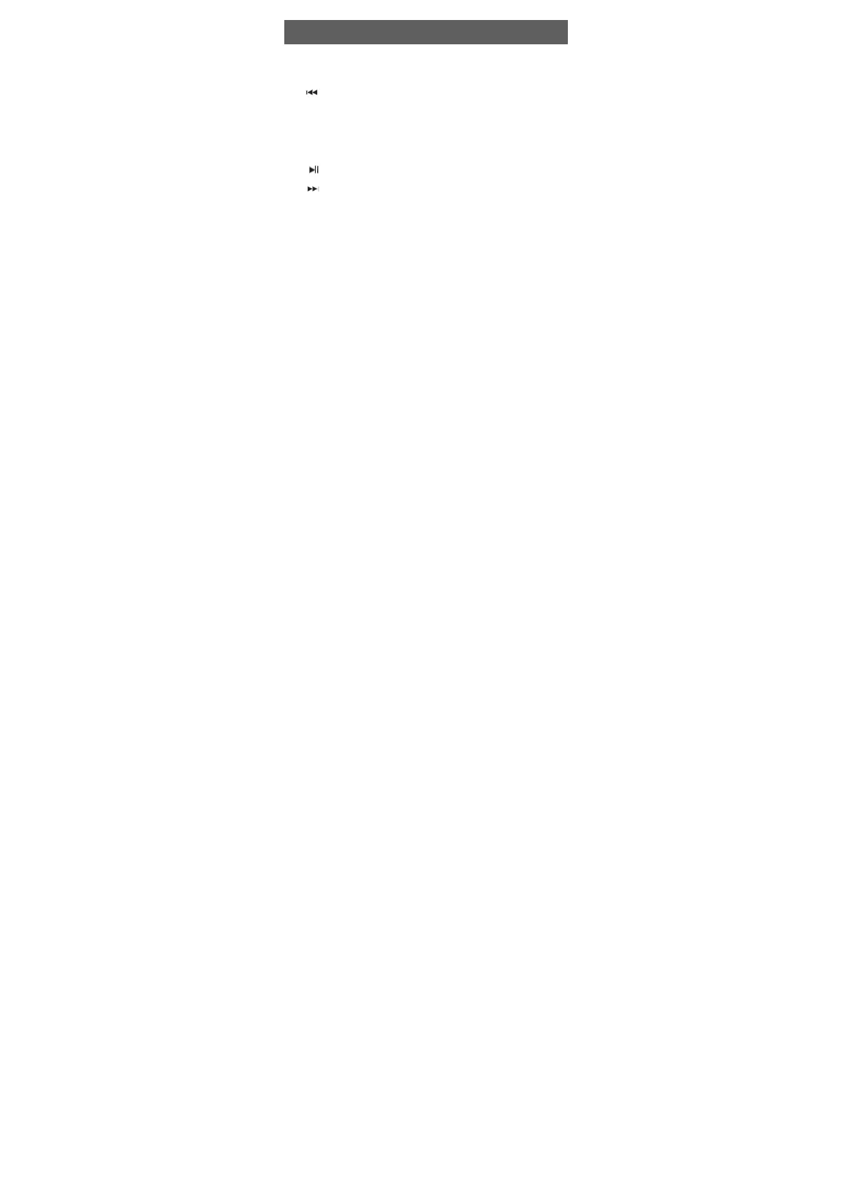 2 “Last” : Last song / fast backward / decrease volume