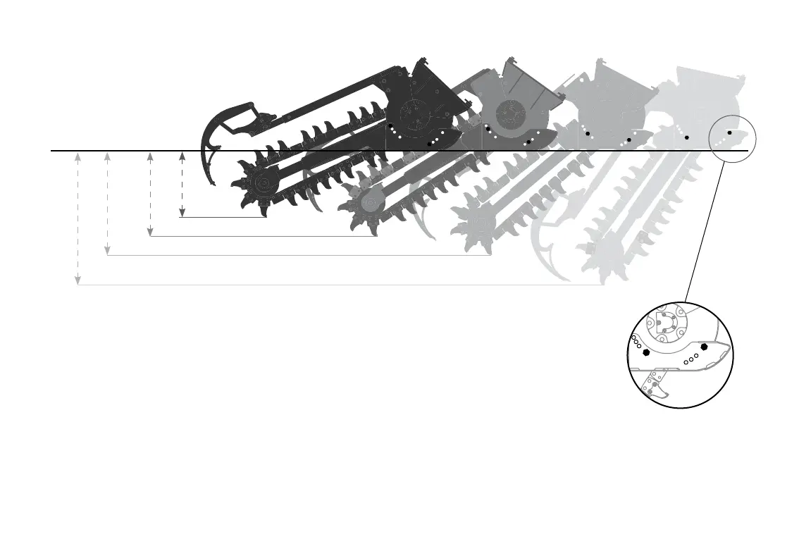 until the two xed bolts line up with the holes for the Trench Depth that you require. See above illustration and