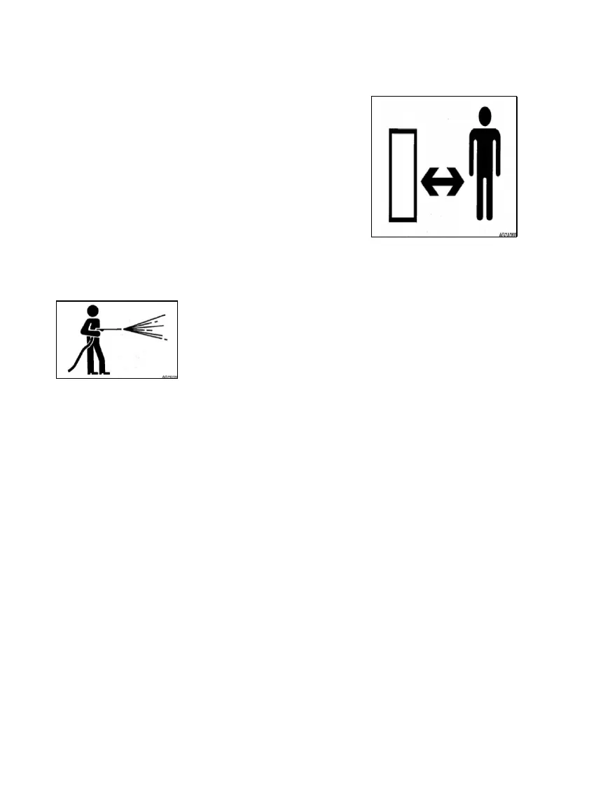 While the machine is working, or the machine is not working but the engine is running, avoid