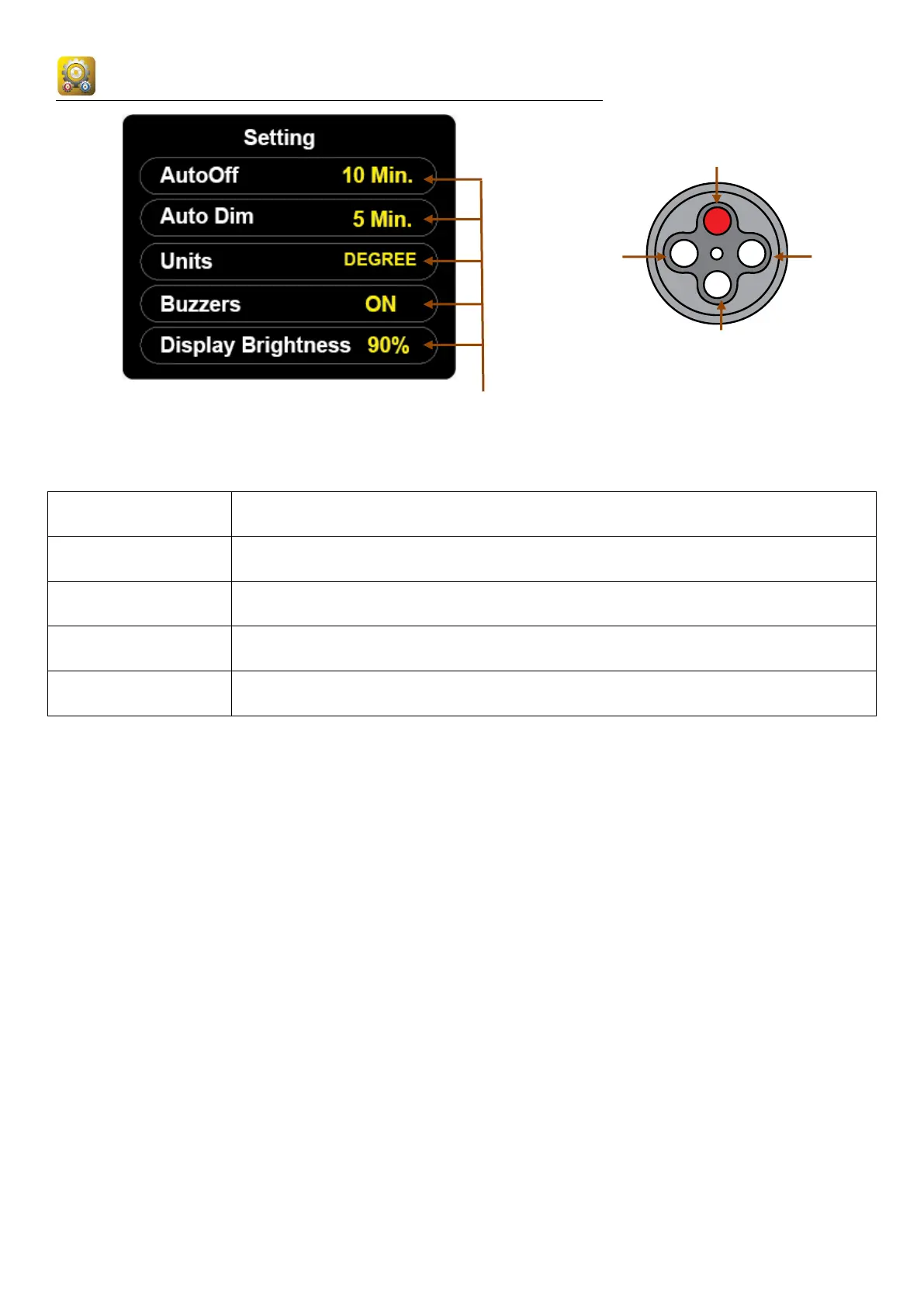 Setting Menu Display Screen and Button Function