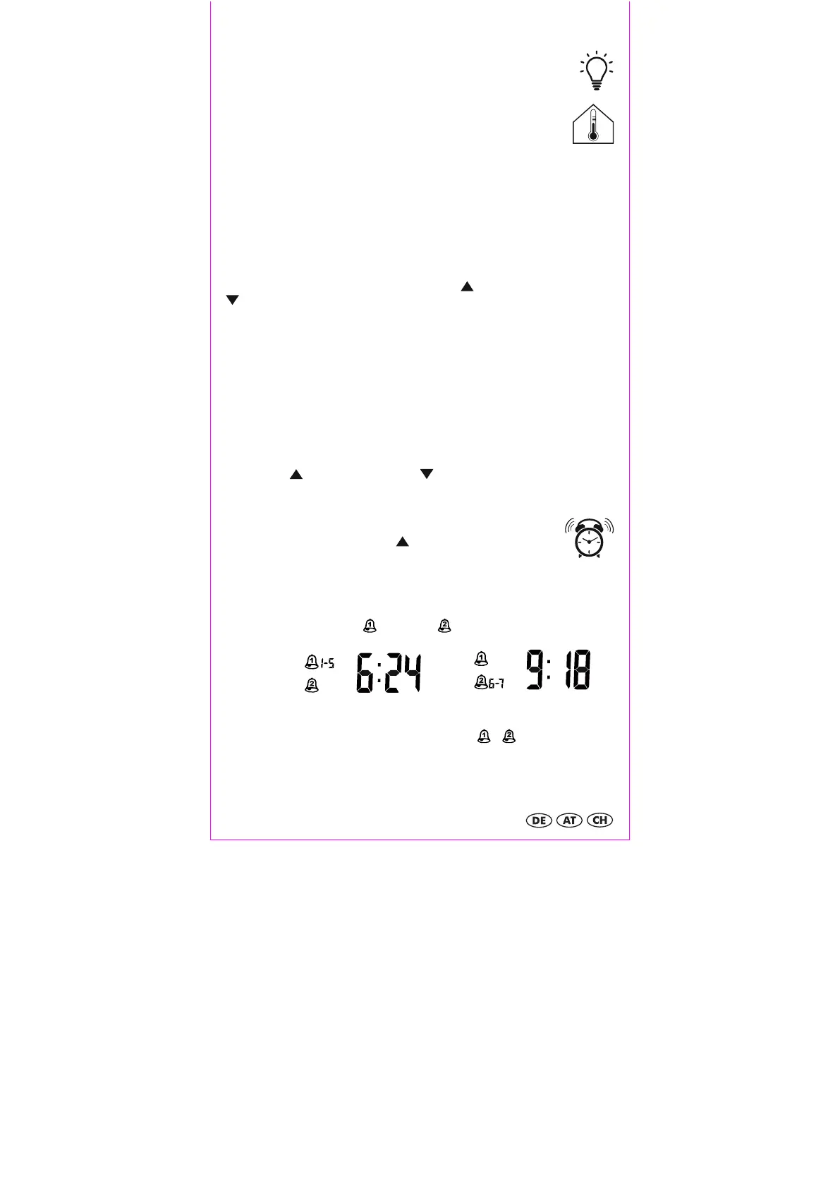 von Alarm 1( 1 - 5) und 2 ( 6 - 7) hin und her zuschalten.