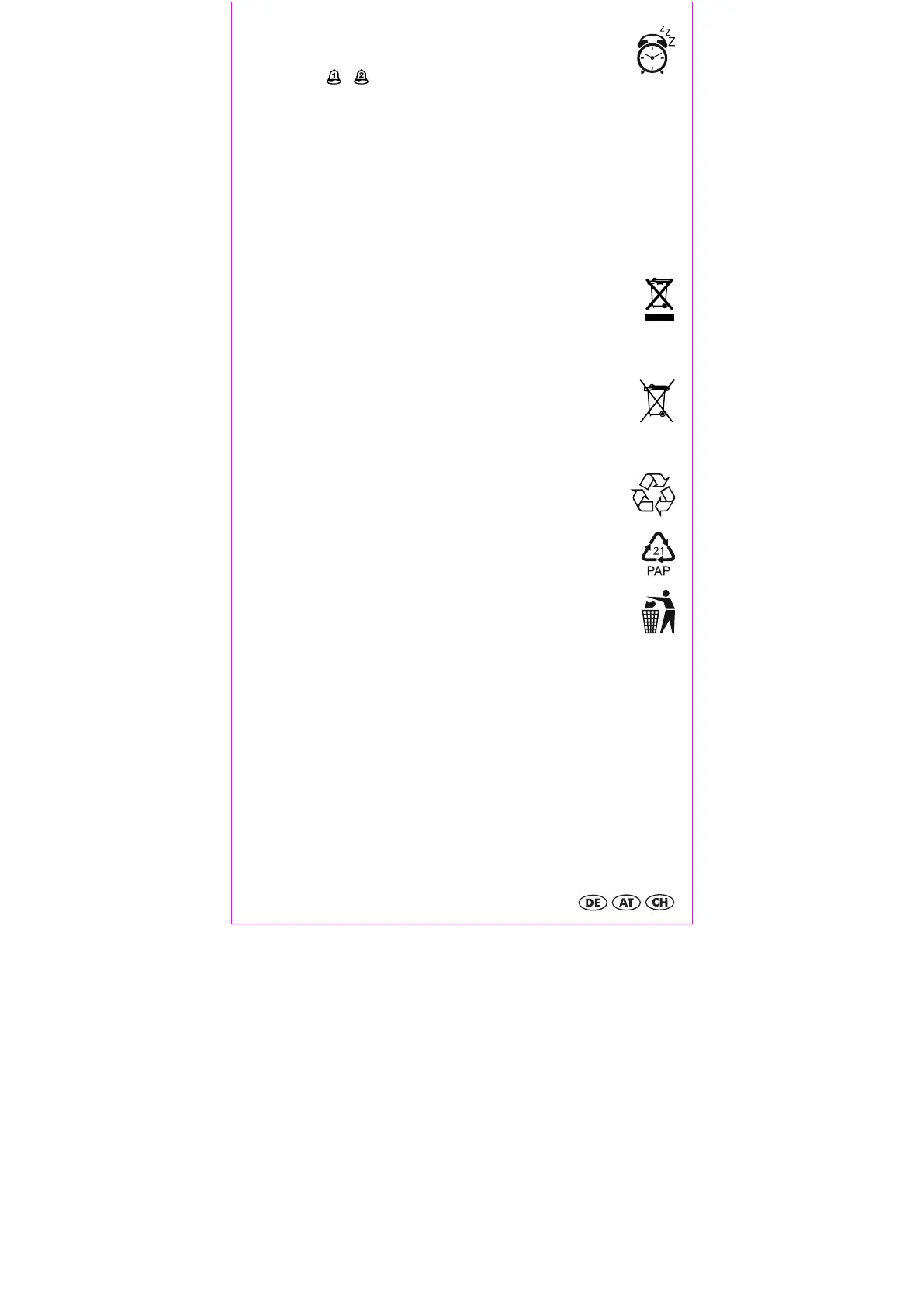 Dieser Wecker darf nicht im normalen Hausmüll entsorgt werden. Entsorgen Sie