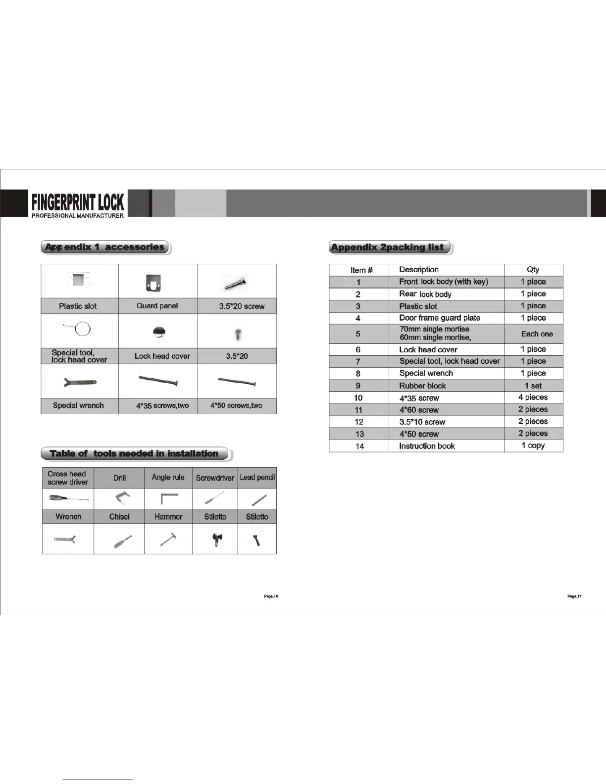 Digi 6600-86 - Accessories; Table of Tools Needed in Installation; Packing List