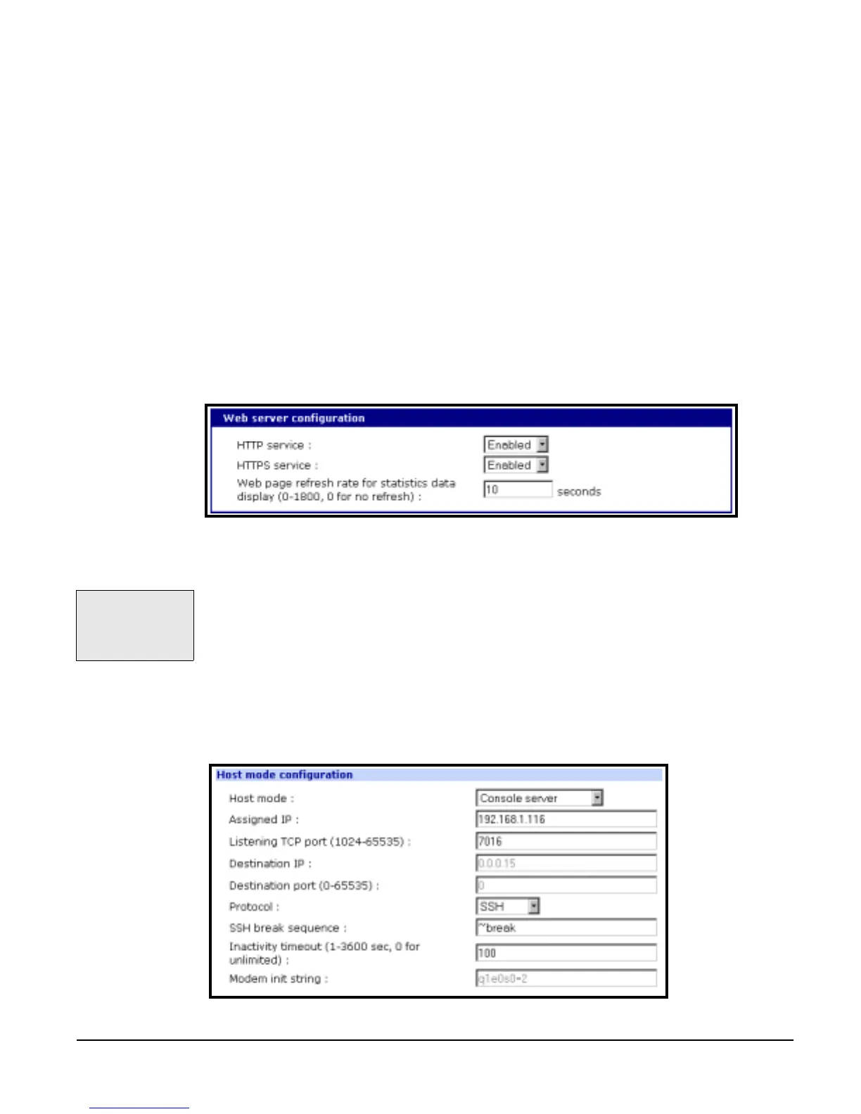 2. Choose Web server configuration from the Network Configuration heading