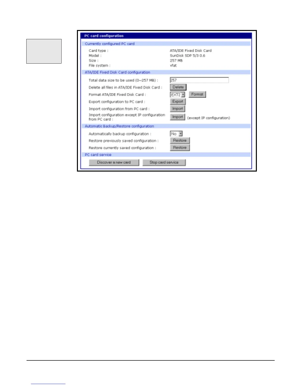 • Format ATA/IDE Fixed Disk Card: The options are EXT2 or FAT formats.