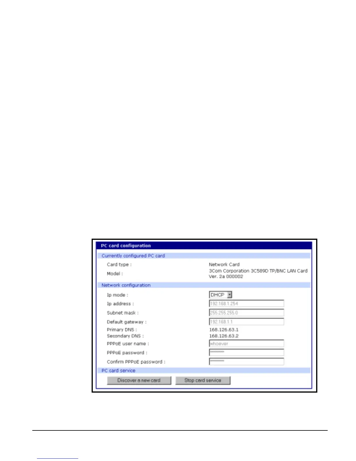 3. Under the PC card heading choose Configuration.
