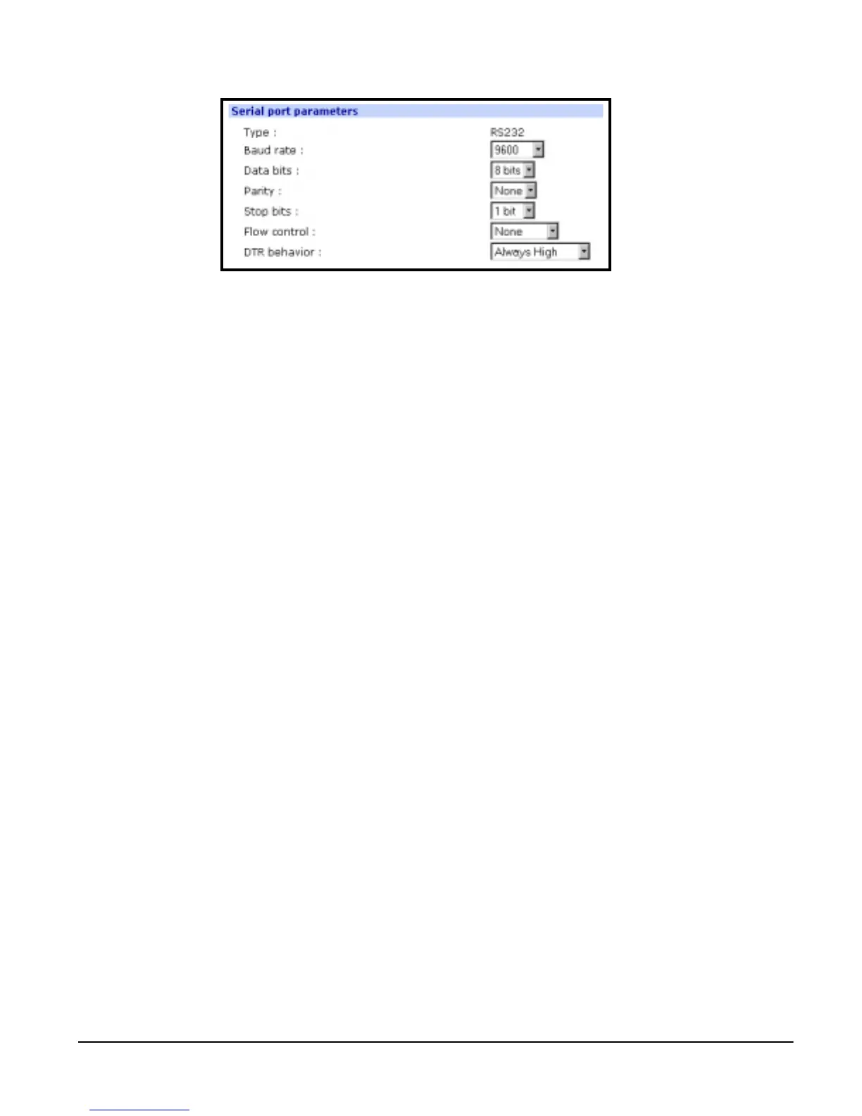 low, or High when open. Setting the DTR to High when open keeps the DTR