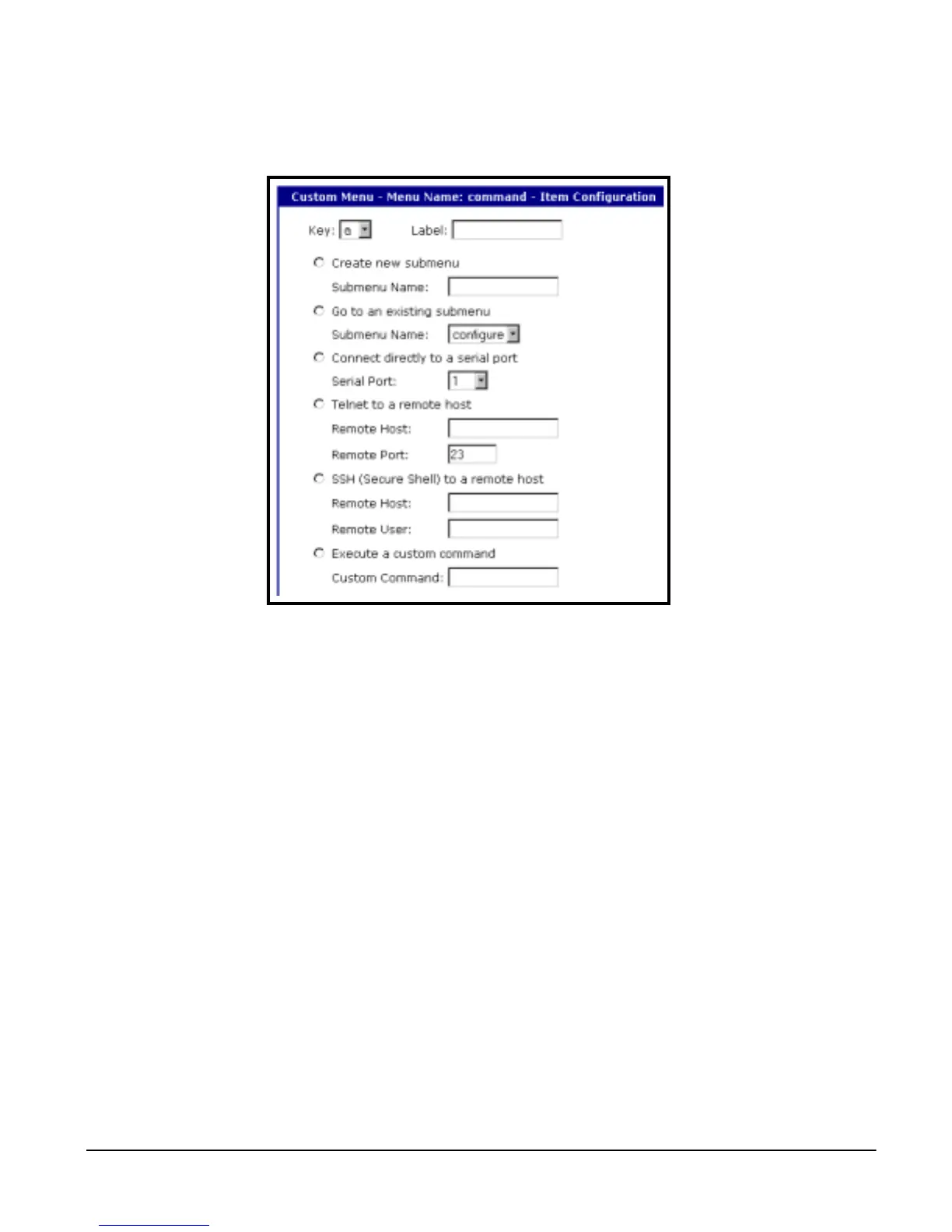 • Label: Label or name for the menu item