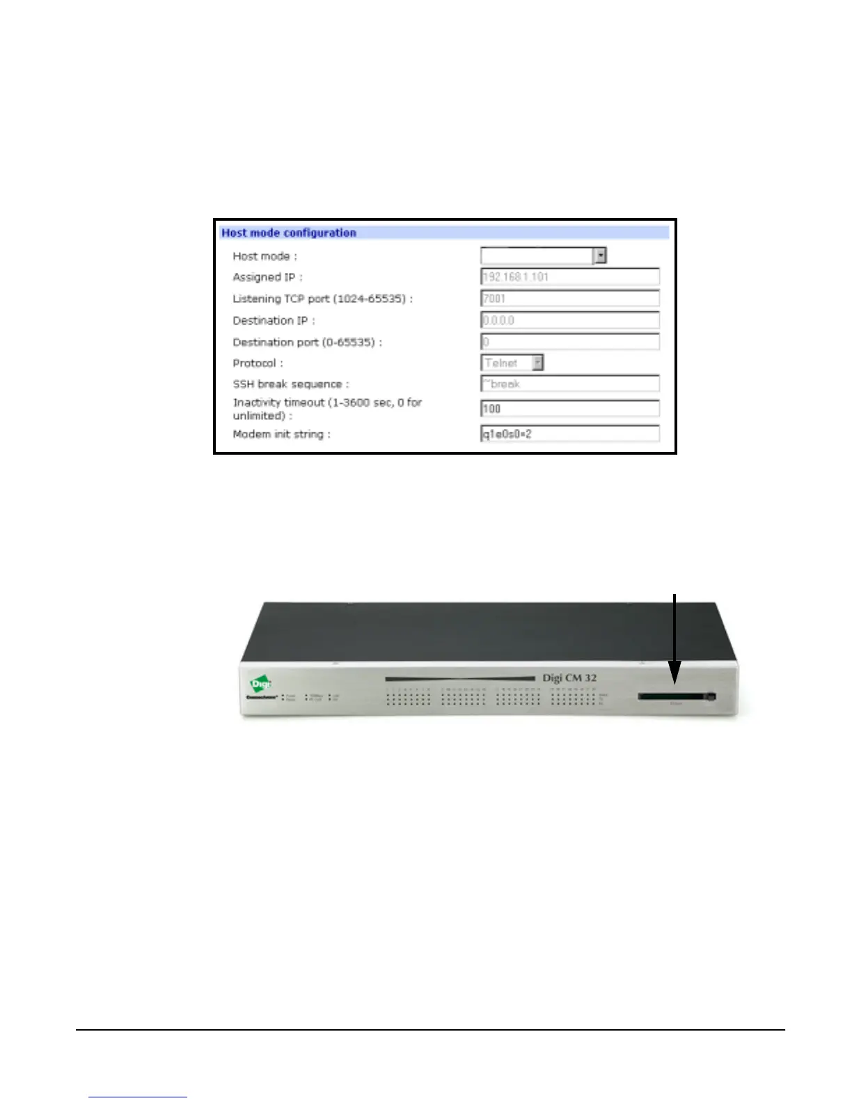 attached to a Digi CM serial port. See your modem user manual for