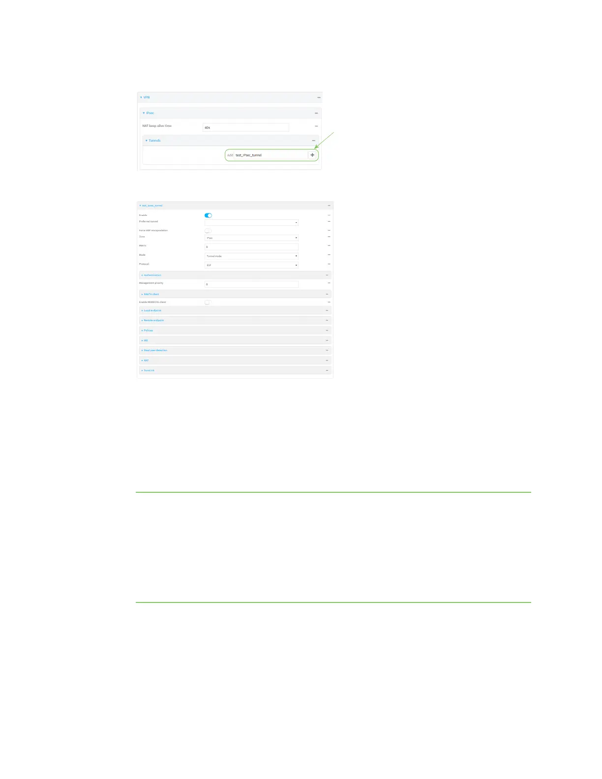 5. For Add IPsec tunnel, type a name for the tunnel and click .