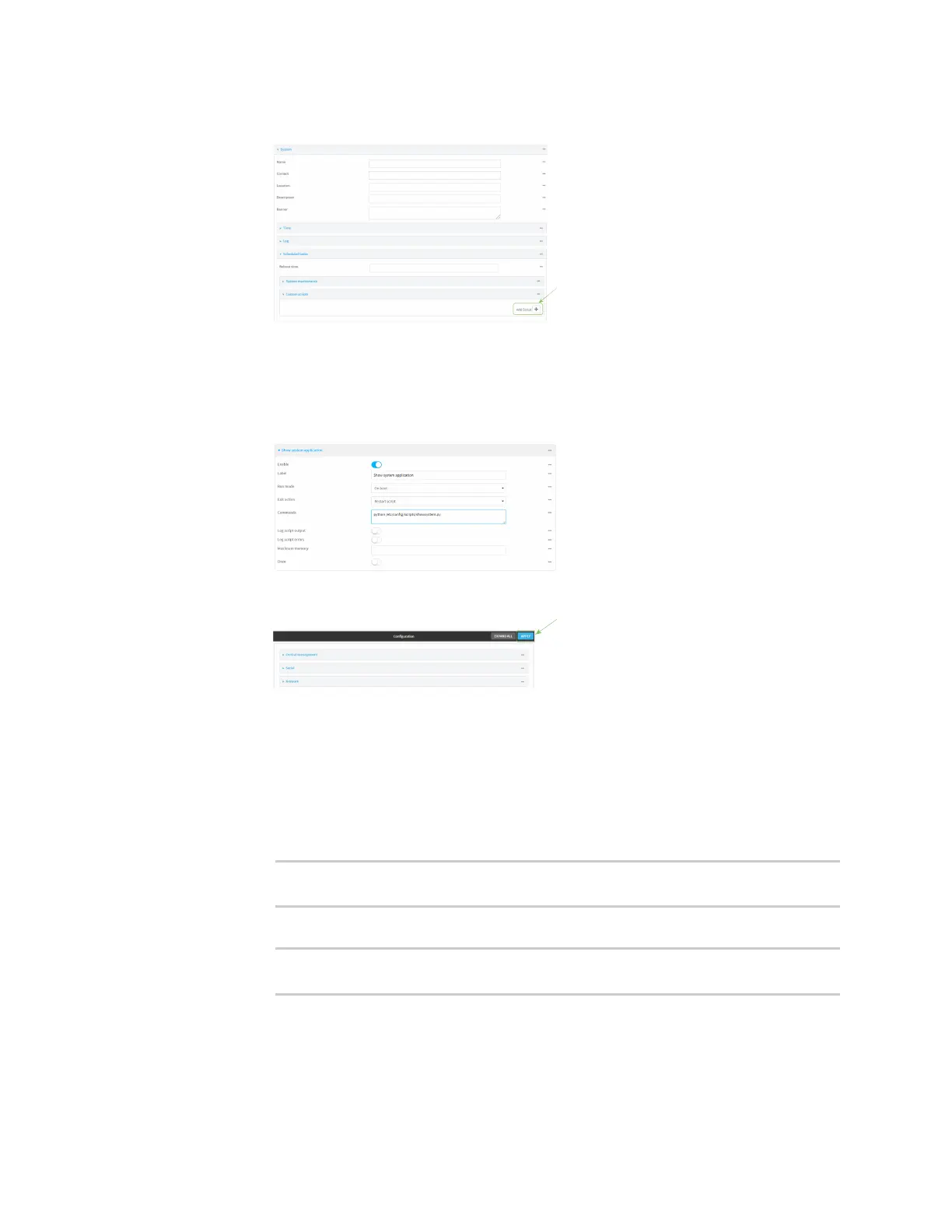 viii. For Commands, type python /etc/config/scripts/showsystem.py.
