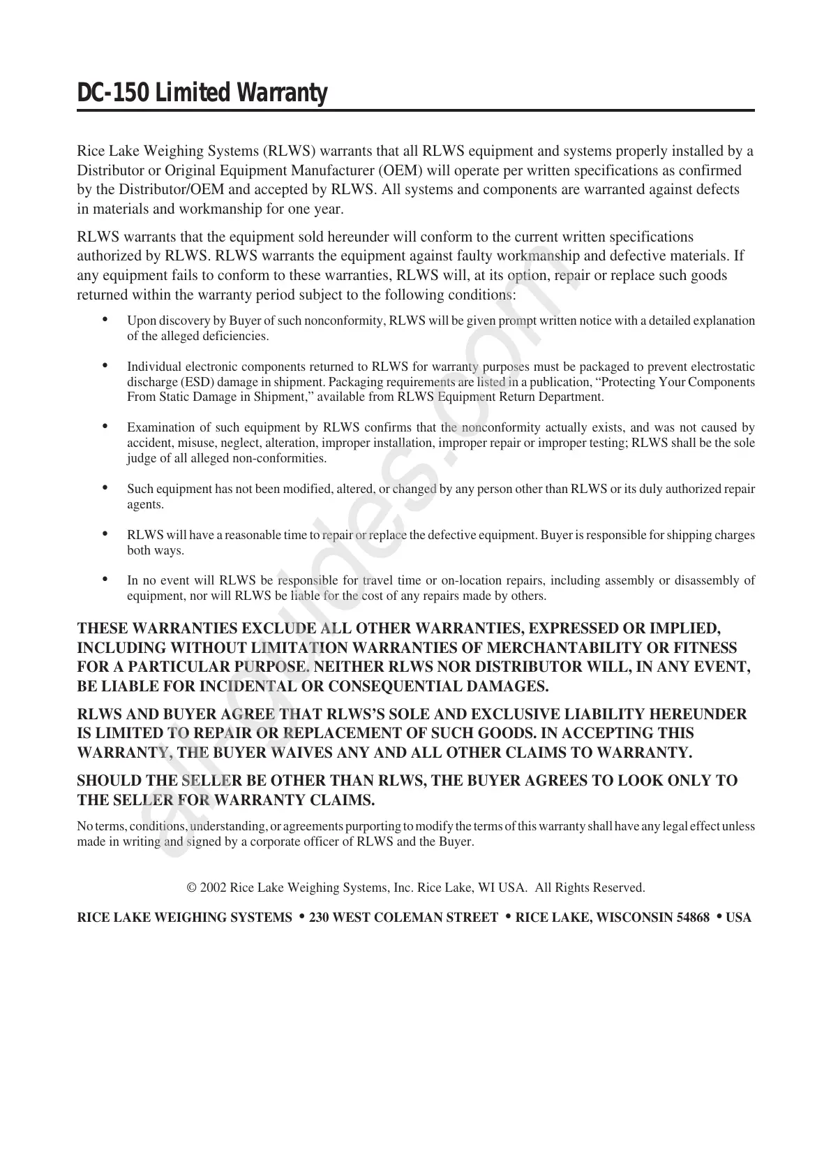 © 2002 Rice Lake Weighing Systems, Inc. Rice Lake, WI USA. All Rights Reserved.