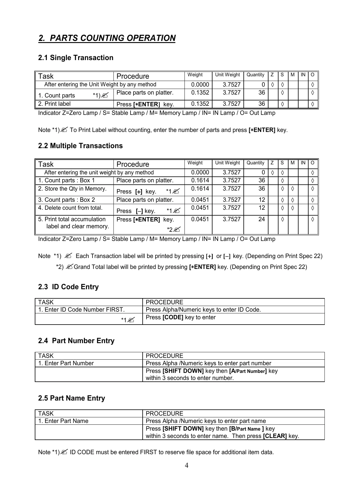 Indicator Z=Zero Lamp / S= Stable Lamp / M= Memory Lamp / IN= IN Lamp / O= Out Lamp