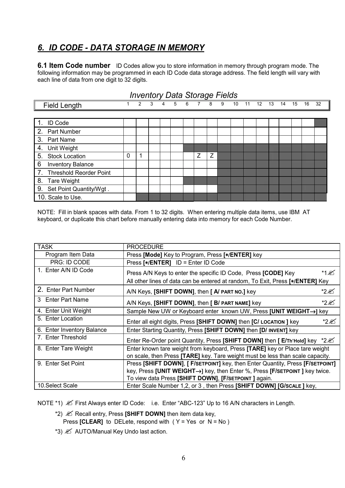 6. ID CODE - DATA STORAGE IN MEMORY