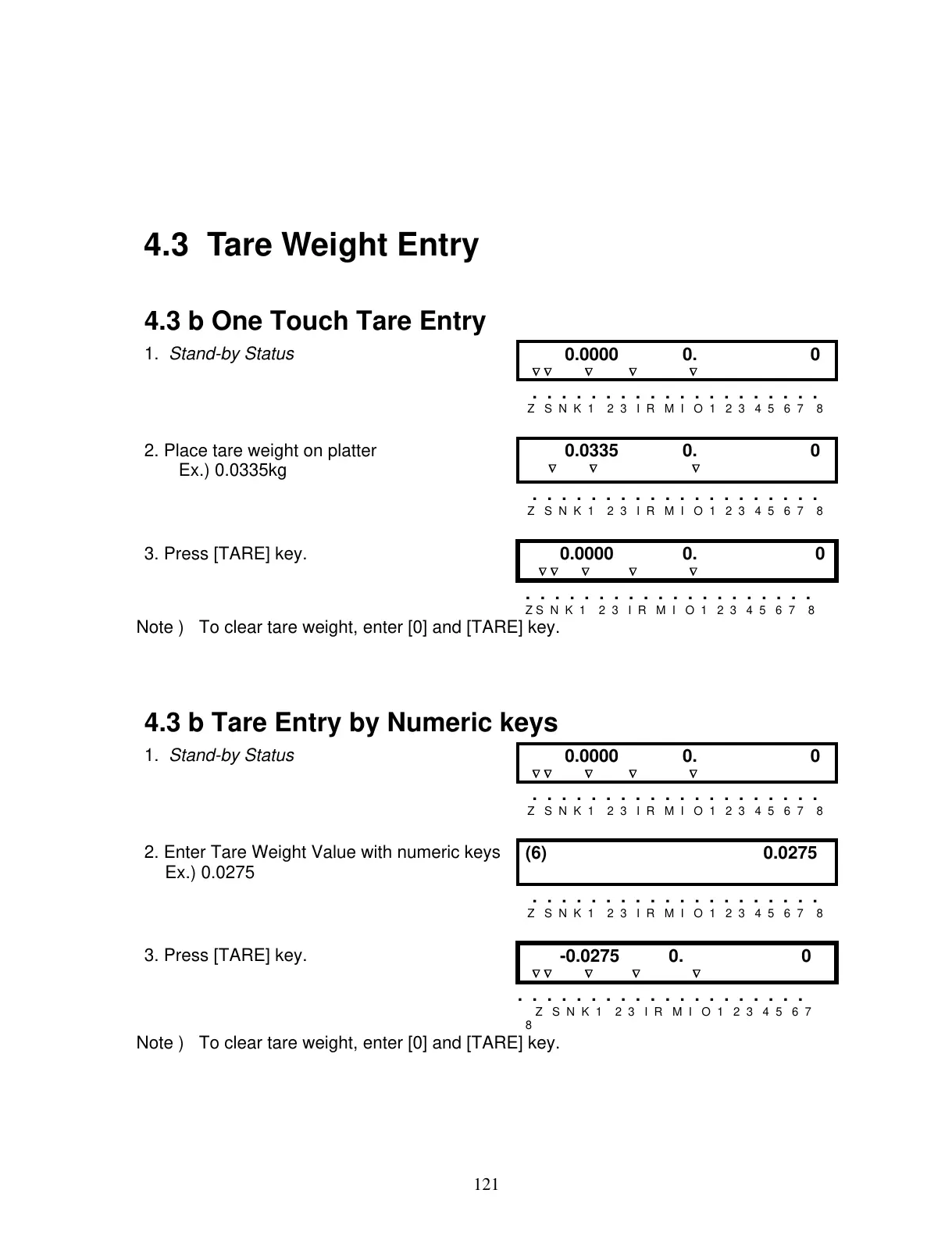 Note ) To clear tare weight, enter [0] and [TARE] key.