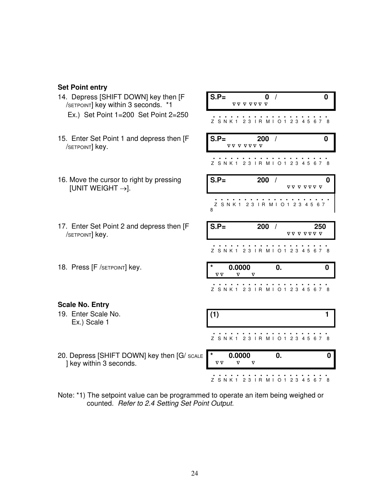 Note: *1) The setpoint value can be programmed to operate an item being weighed or