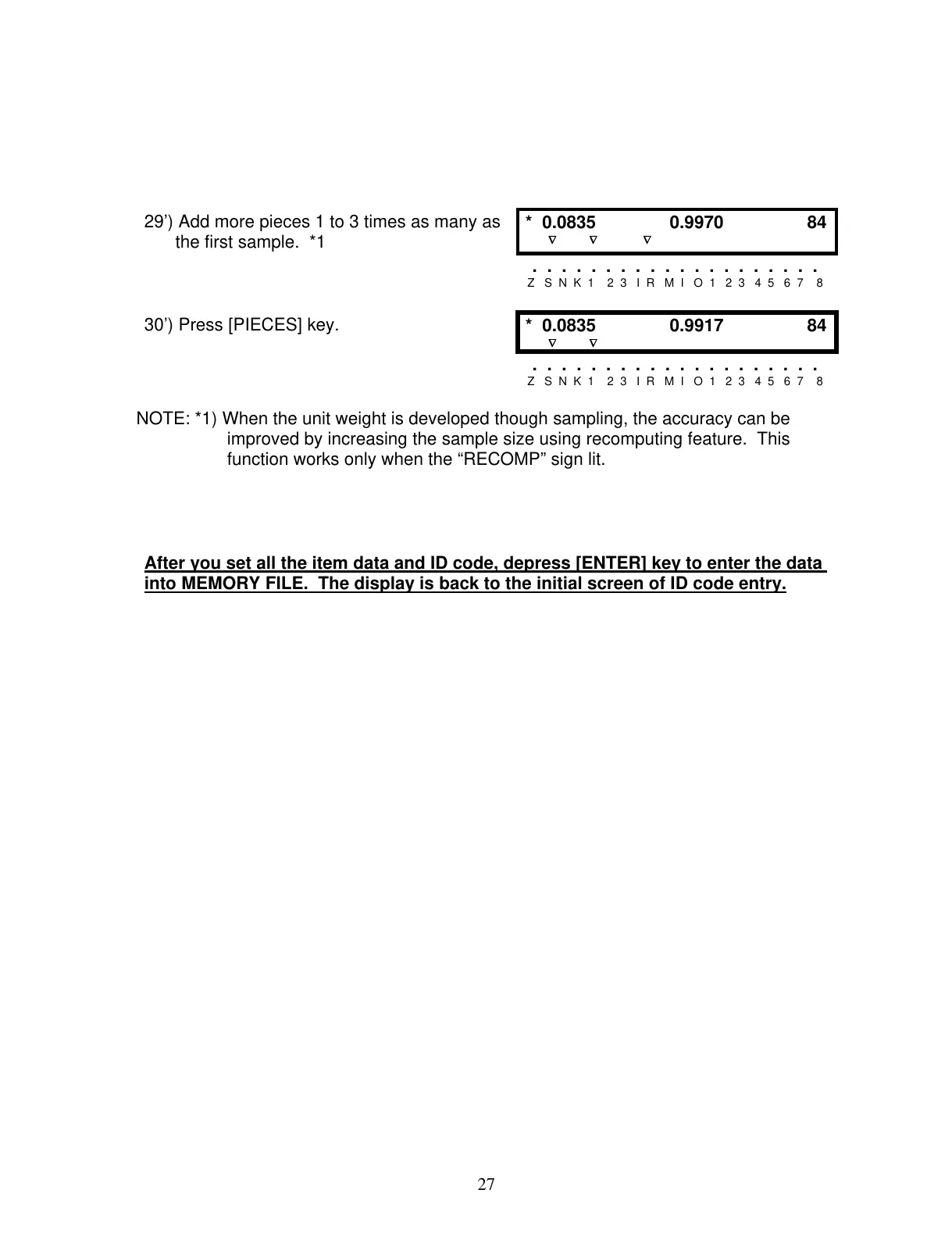 After you set all the item data and ID code, depress [ENTER] key to enter the data