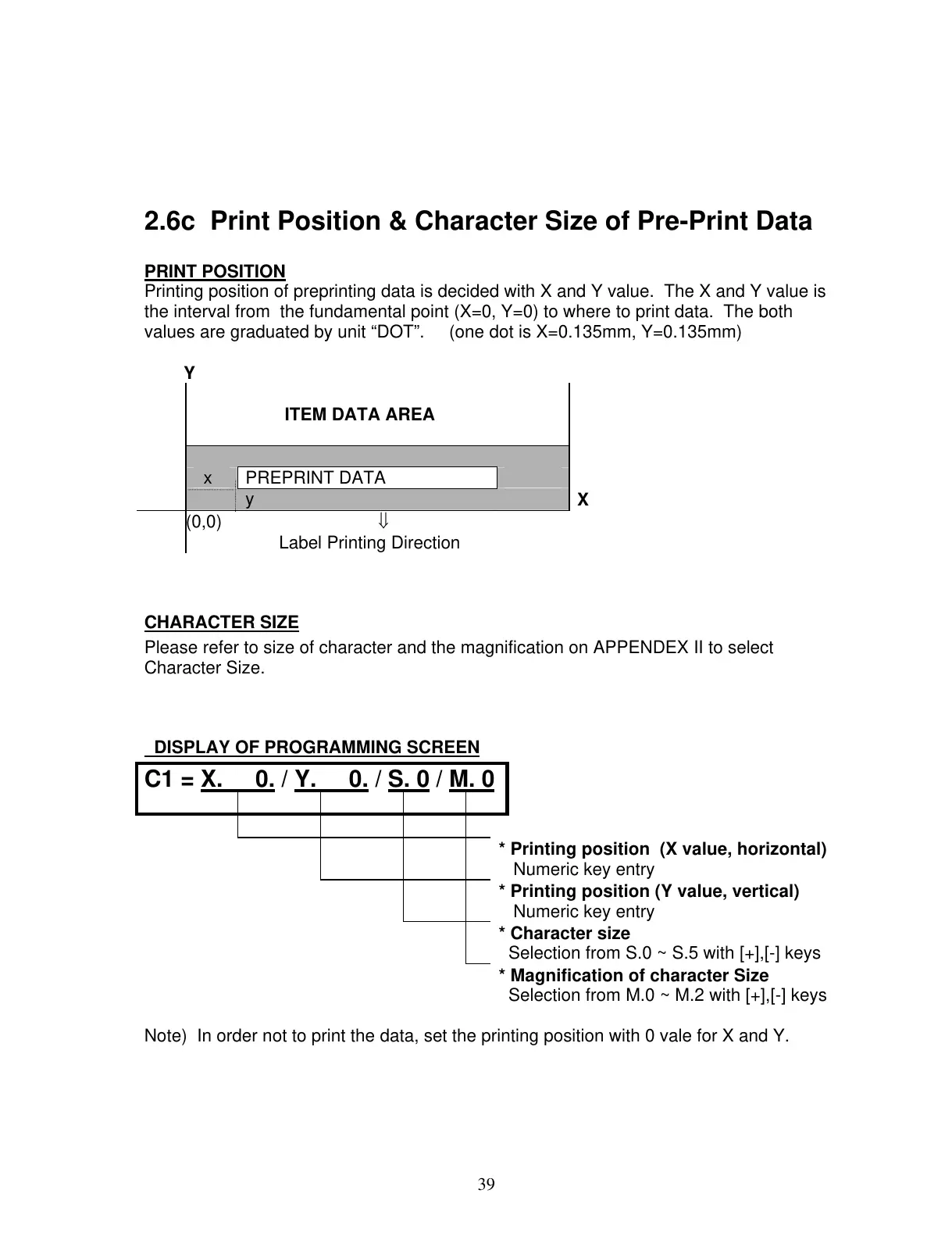 Note) In order not to print the data, set the printing position with 0 vale for X and Y.