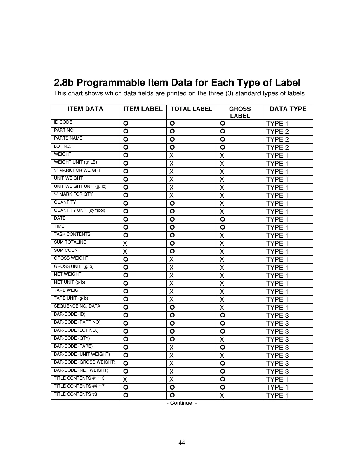 2.8b Programmable Item Data for Each Type of Label