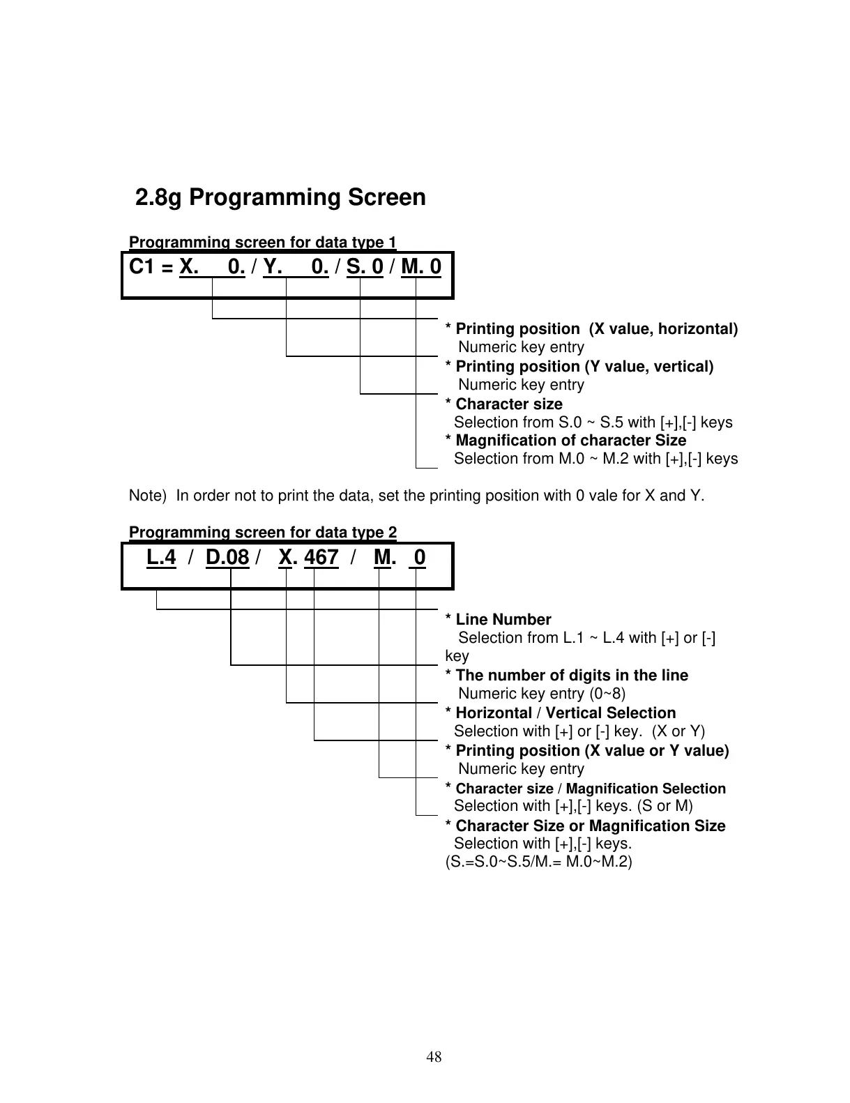 Note) In order not to print the data, set the printing position with 0 vale for X and Y.