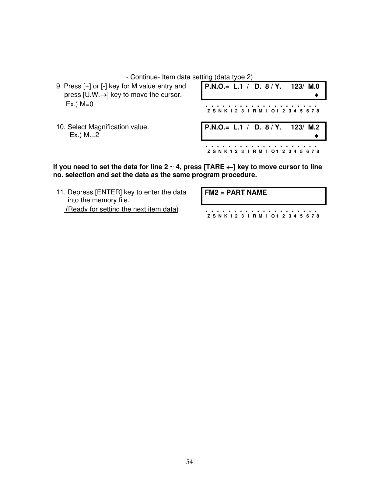If you need to set the data for line 2 ~ 4, press [TARE ←] key to move cursor to line